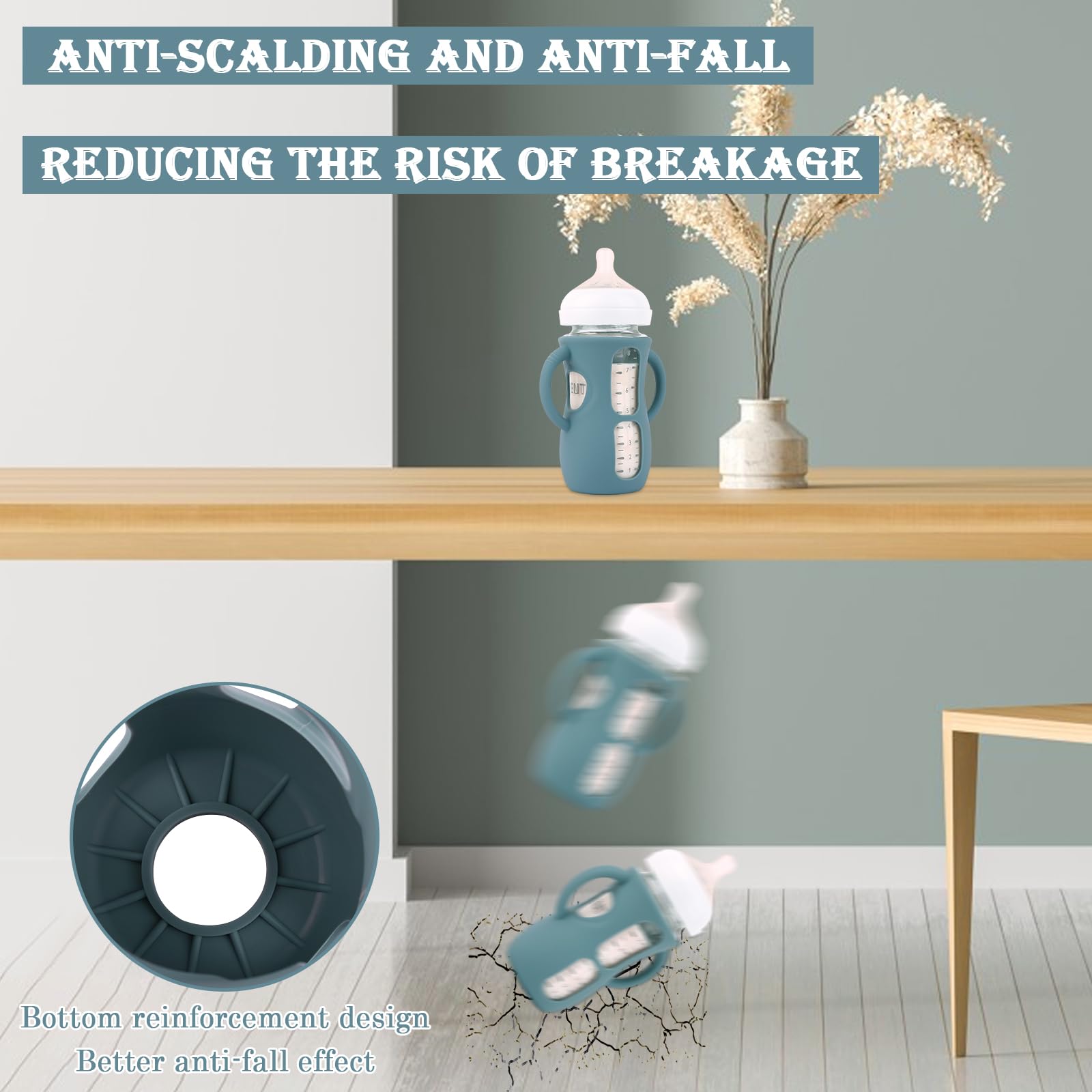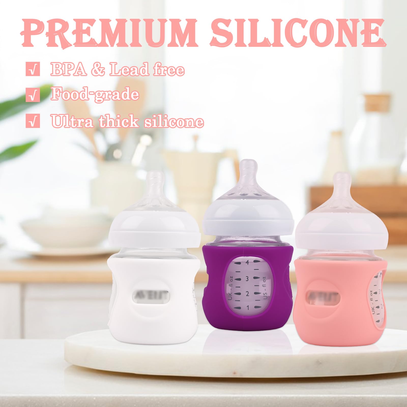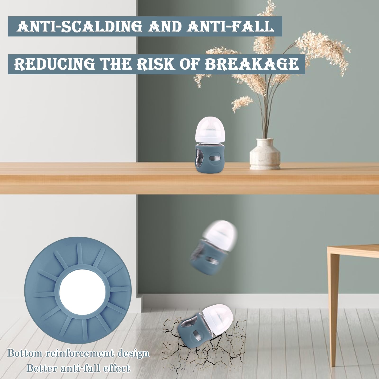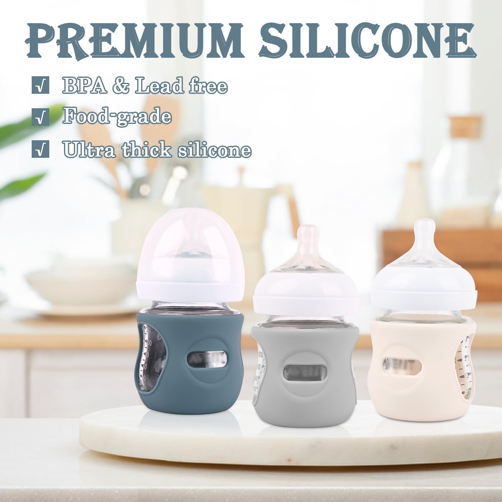 3 Pack Silicone Sleeves for Avent Natural Glass Baby Bottles, Anti Breakage Baby Bottle Holder, Compatible Philips Avent Glass Natural Baby Bottle 4 oz(Grey+Dark Blue+Apricot)