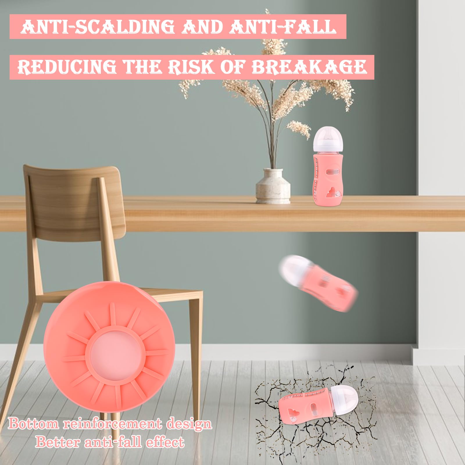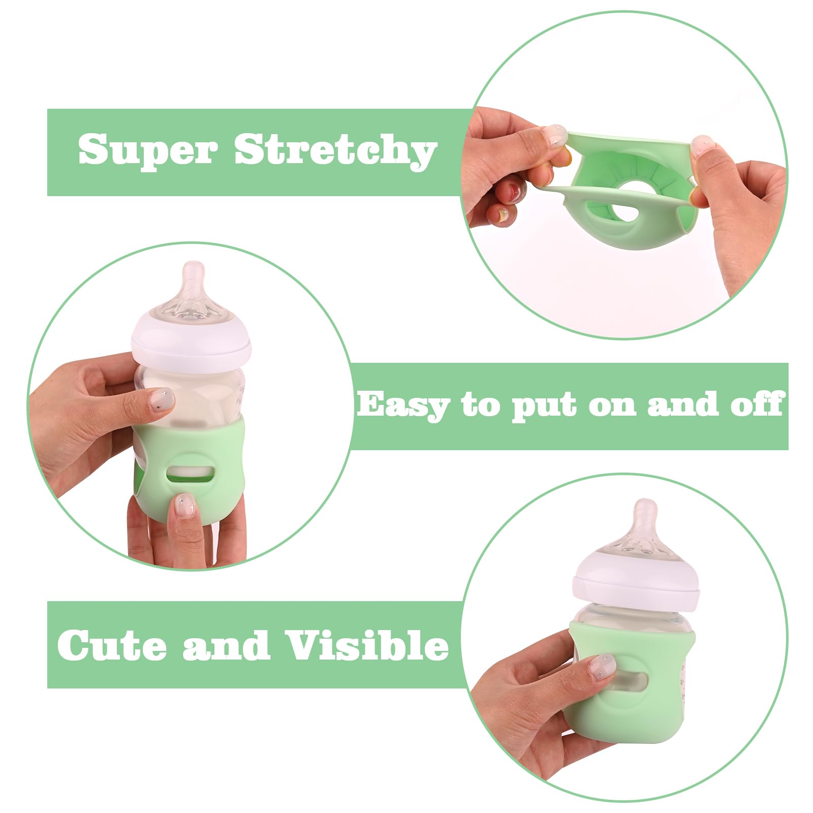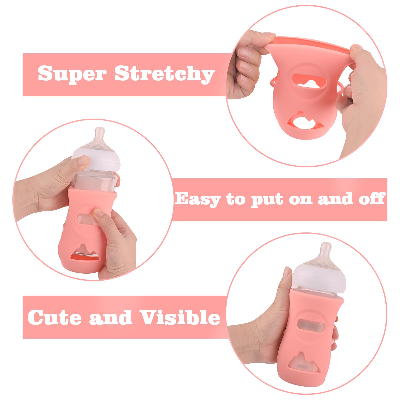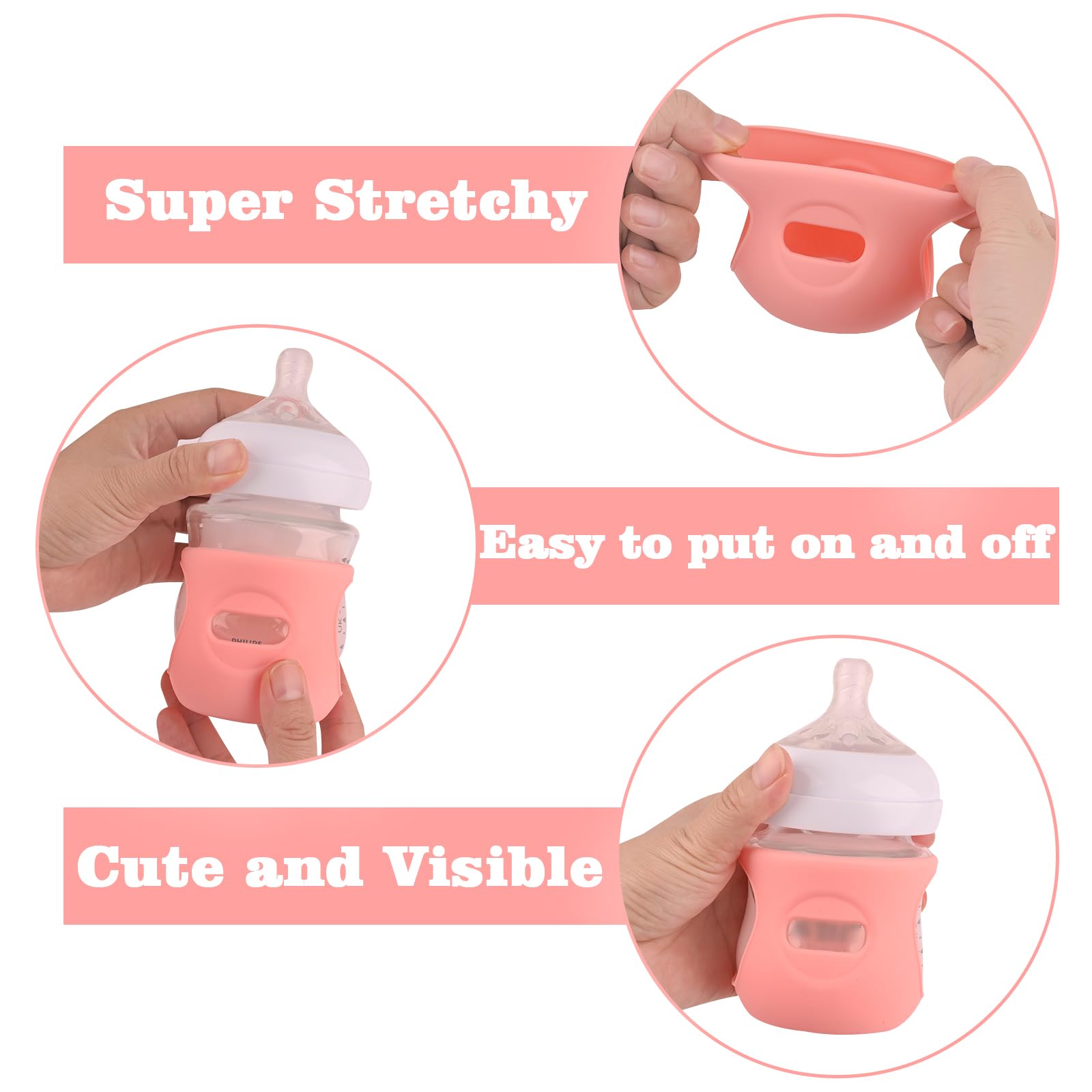 - comfortably Feeding: Super nice silicone sleeve for bottles help soften the grip for mom and also helps baby hold the bottle when it comes time for them to hold it themselves comes in cute colors and an adorable little cut out so that you can keep an eye on the amount of milk left.