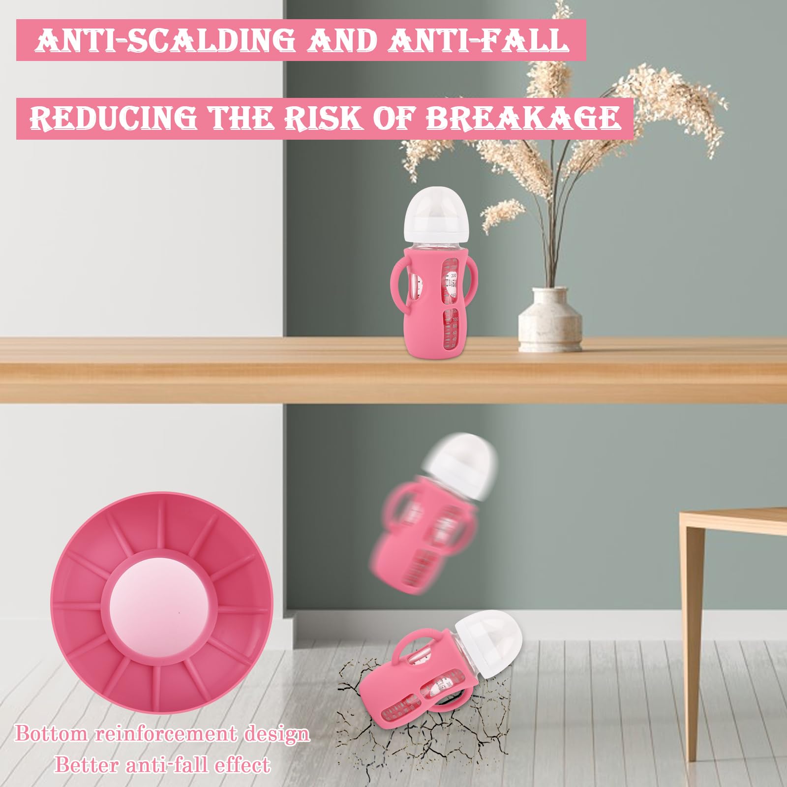 - Thermal Insulation: Silicone baby bottle holder also help insulate the glass bottle, facilitate removal from in the heater, and maintain the temperature of the milk longer than if the bottle was sleeveless.