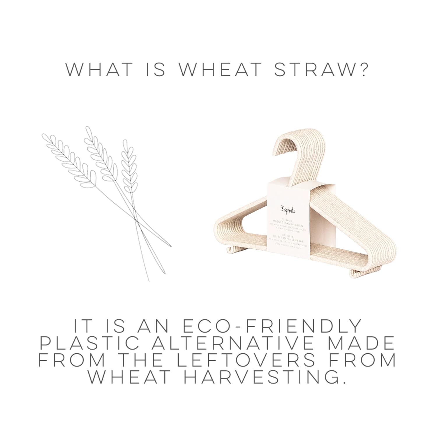 - 🌎 𝗣𝗥𝗔𝗖𝗧𝗜𝗖𝗔𝗟 𝗔𝗡𝗗 𝗘𝗖𝗢-𝗖𝗢𝗡𝗦𝗖𝗜𝗢𝗨𝗦 - Made from the leftovers from wheat harvesting, the 3 Sprouts wheat straw baby, kids & toddler hangers are a superior alternative to the traditional plastic hangers in the market. This makes them a practical and eco-conscious option for parents seeking safe, earth-friendly products for their children’s closets.
