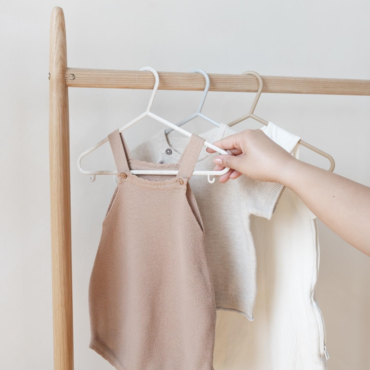 - 🪶 𝗗𝗨𝗥𝗔𝗕𝗟𝗘 & 𝗟𝗜𝗚𝗛𝗧𝗪𝗘𝗜𝗚𝗛𝗧 - Crafted from wheat straw, these eco-friendly kids toddler hangers for clothes are built to last & withstand the active lifestyle of your child, and sturdy enough to hold garments securely yet light enough for little hands to manage easily when picking out their outfits.