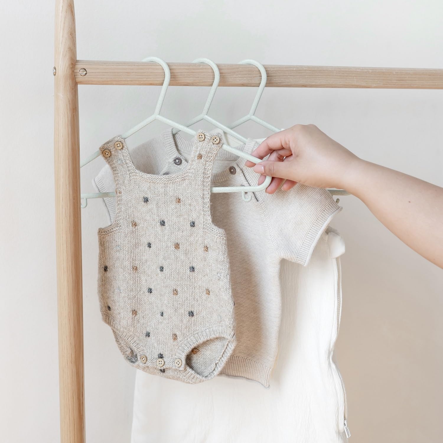 - 👚 𝗣𝗘𝗥𝗙𝗘𝗖𝗧𝗟𝗬-𝗦𝗜𝗭𝗘𝗗 𝗙𝗢𝗥 𝗖𝗟𝗢𝗦𝗘𝗧 𝗢𝗥𝗚𝗔𝗡𝗜𝗭𝗔𝗧𝗜𝗢𝗡 - Specifically designed to preserve the shape of your child's clothing, the 3 Sprouts kids hangers keep everything from tiny baby onesies to toddler coats wrinkle-free and ready to wear. This long-term solution that grows with your child, features 30 hangers for each set in a soft-speckled shade that adds a playful touch to the closet while simplifying color coordination and closet organization.