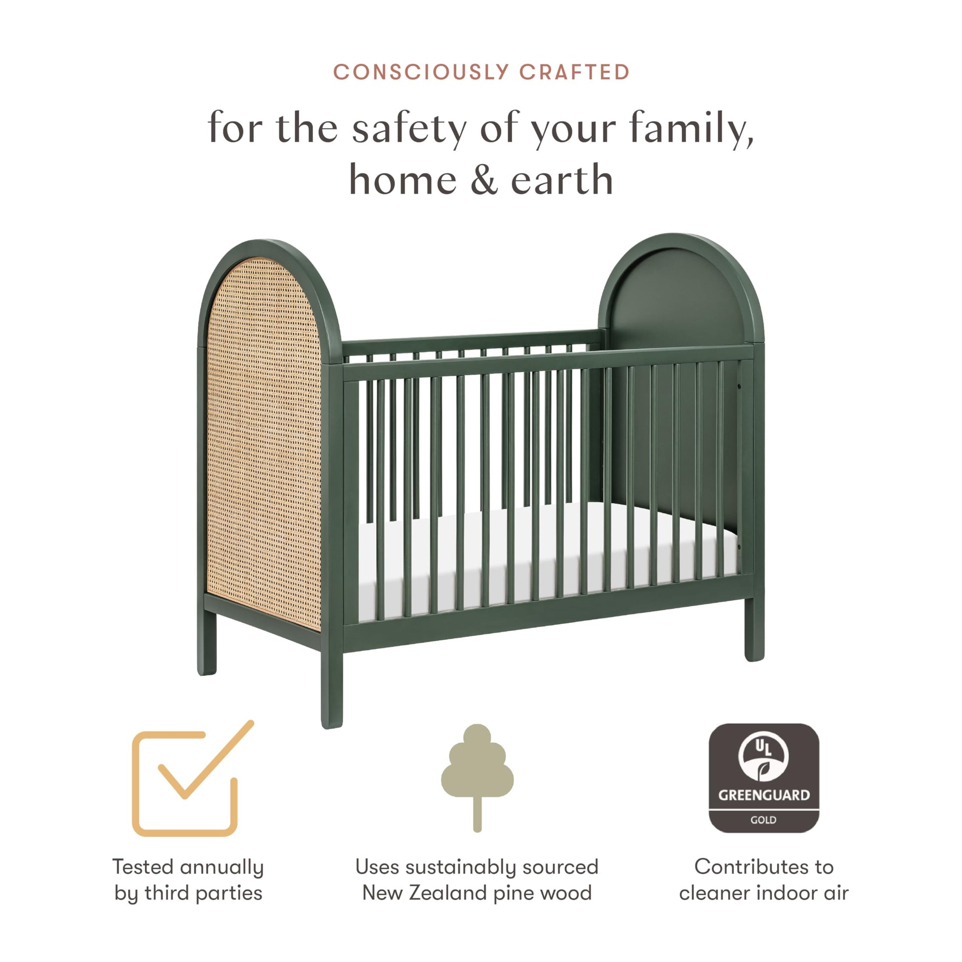 - Babyletto Bondi Cane 3-in-1 Convertible Crib with Boho-Inspired Charm: Crafted with warm wood tones and woven plant-based cane, this crib features playful arches, curved feet, and natural textures—bringing cozy, boho style to your nursery from day one.