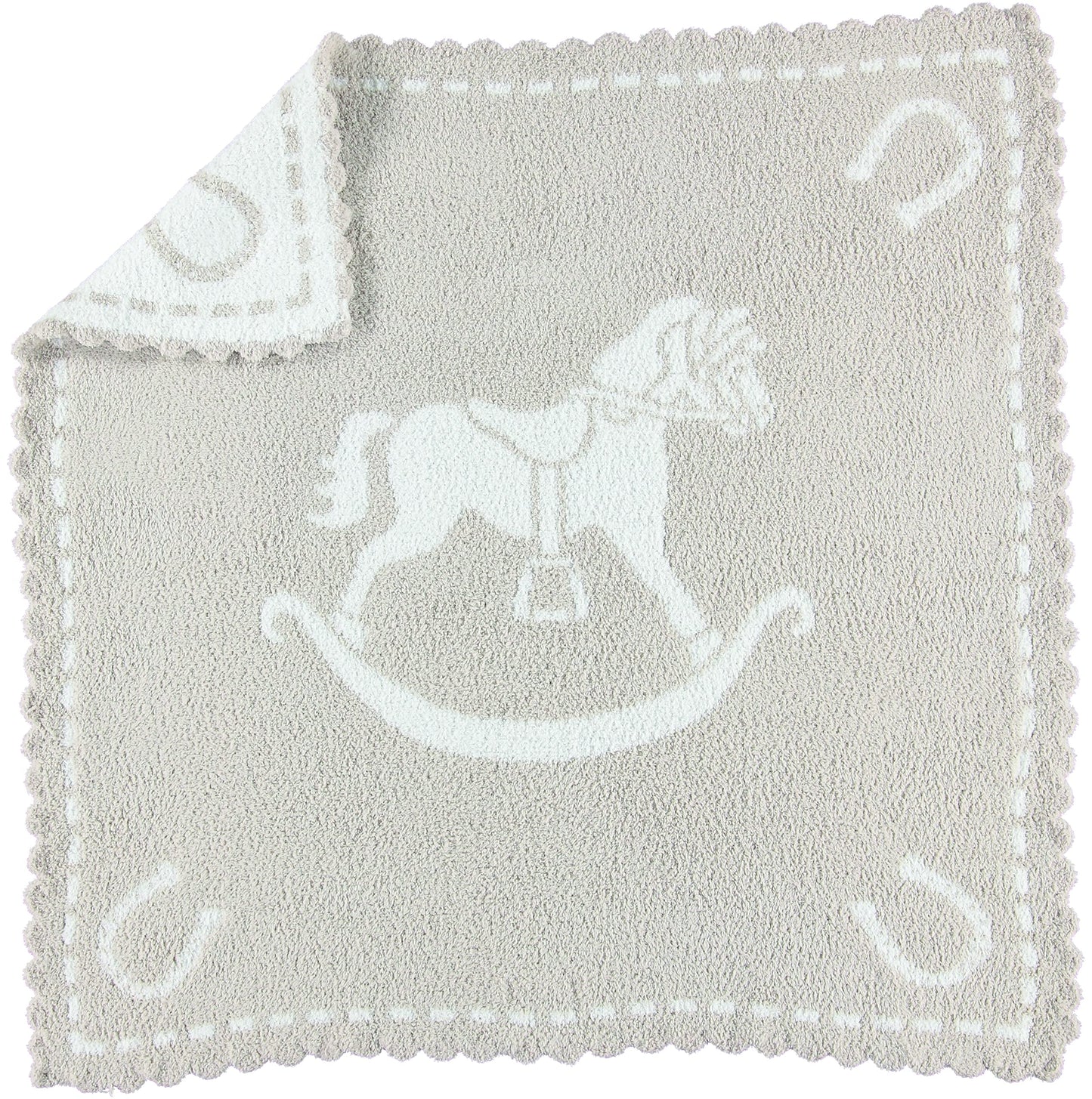 Barefoot Dreams CozyChic Scalloped Baby Receiving Blanket - Stone & Rocking Horse,Stone & White,30x32,CozyChic Scalloped Receiving Blanket
