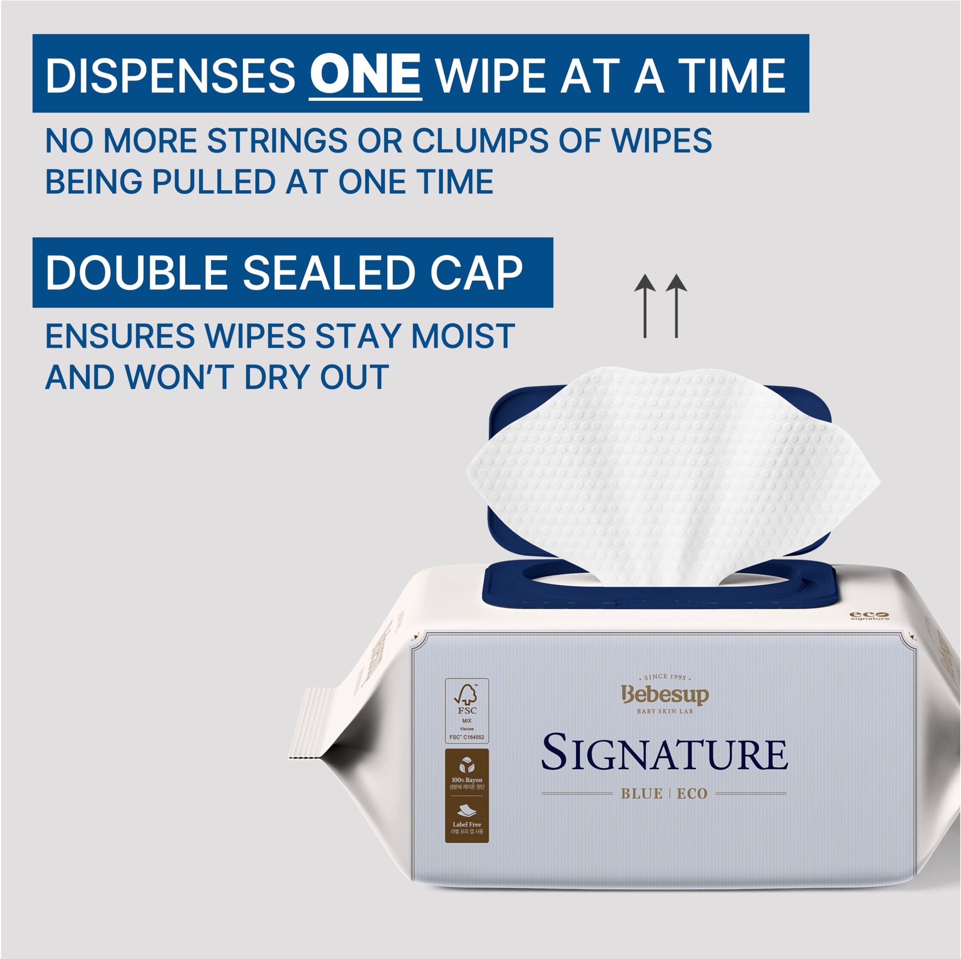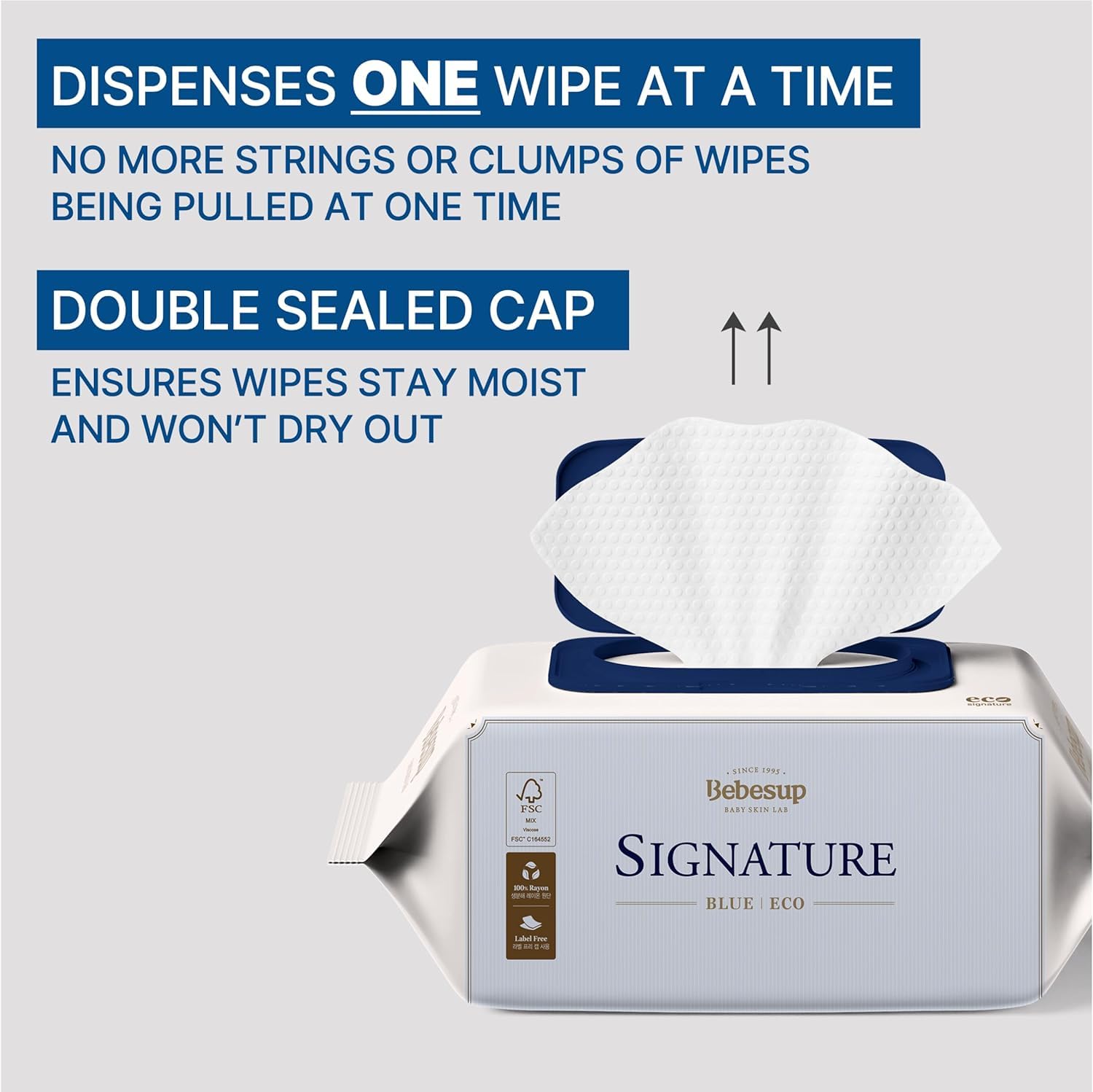 BEBESUP- Korea’s #1 Signature Baby Wipes - Hypoallergenic Water-based Unscented Alcohol-Free Ultra-Thick Super Seed Extracts Organic Plant-Based for sensitive skin Flip-Top 560 Count (8 Packs)