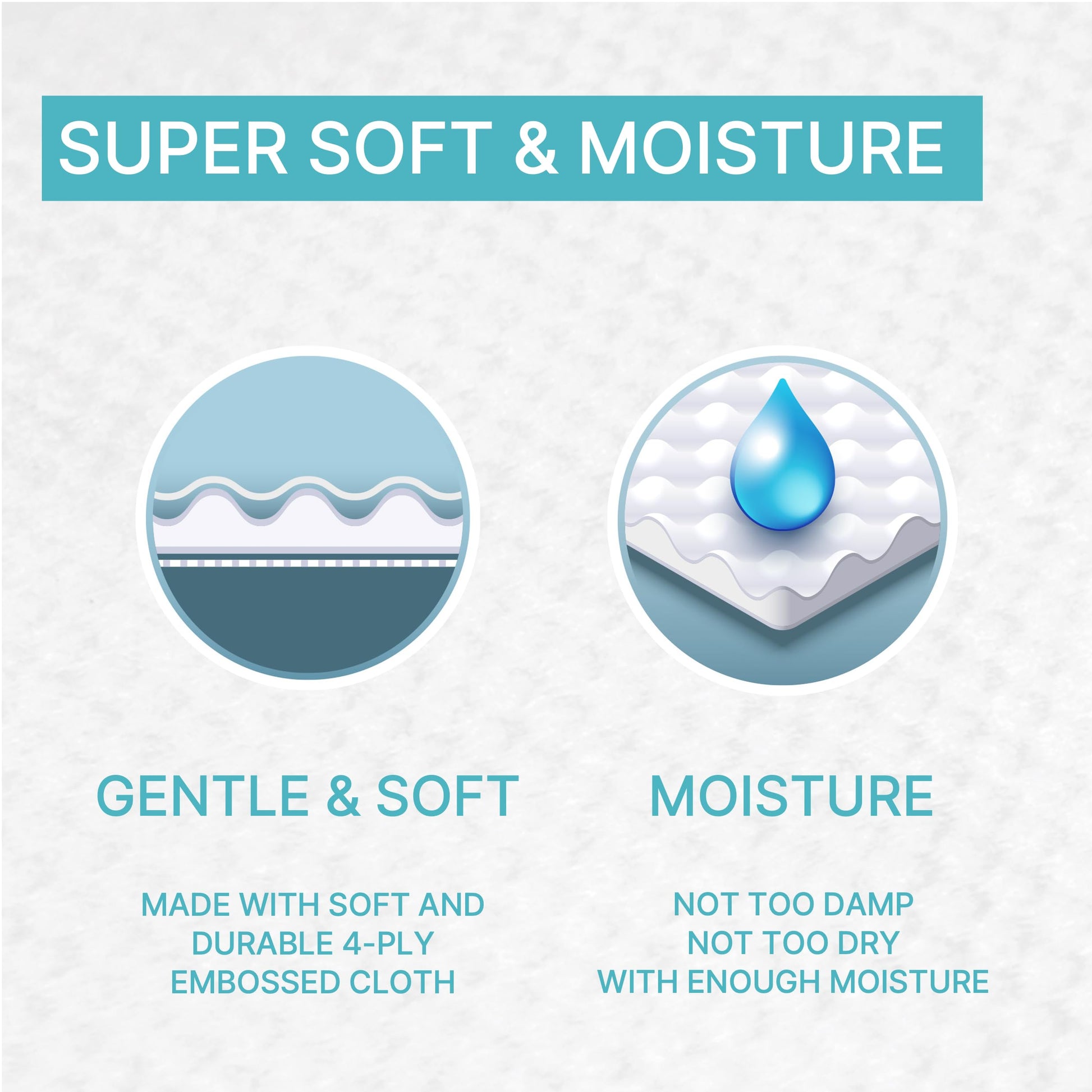 - 🍼 Extra-Thick and Soft: Made with durable 75 GSM 4-ply embossed cloth, these wipes are thicker and stronger, cleaning up tough messes with just one wipe.