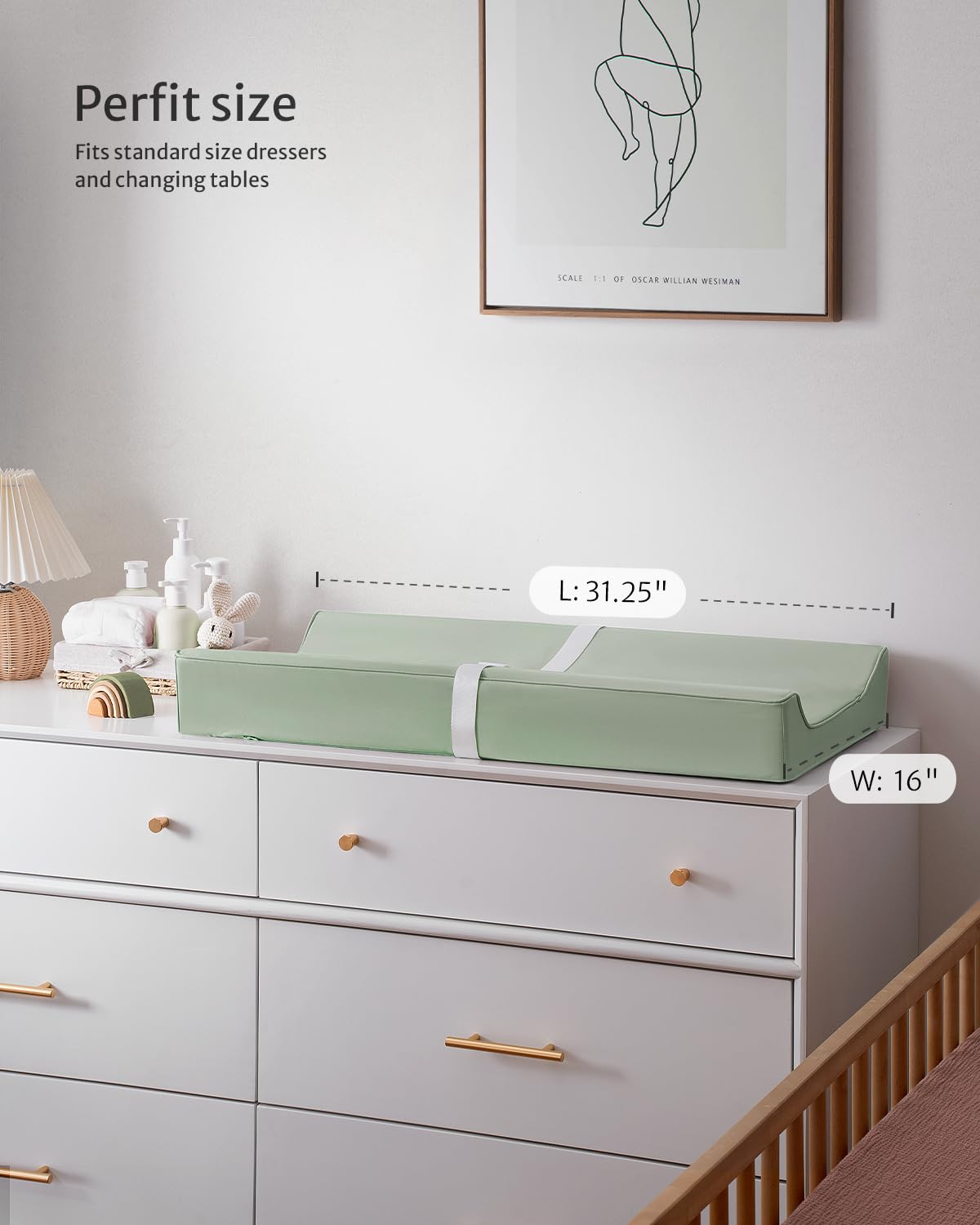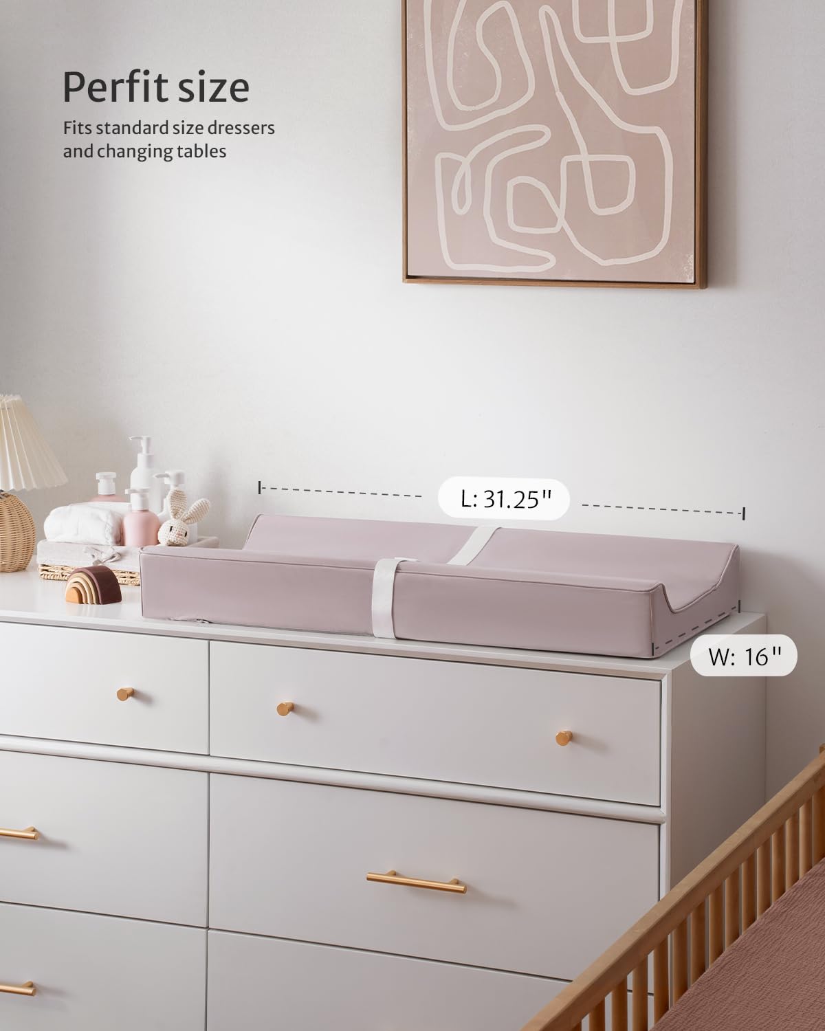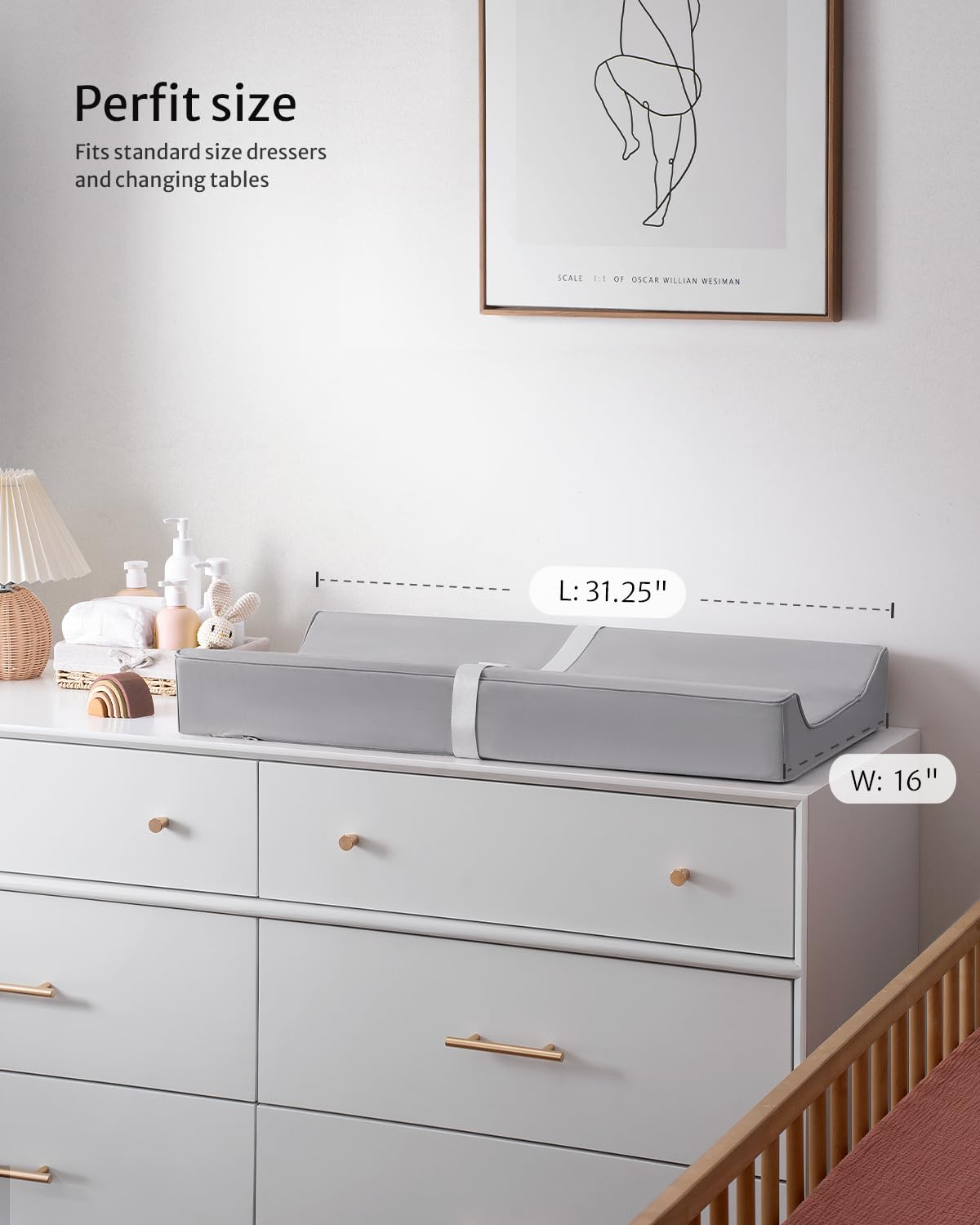 - Perfect Size - The baby changing pad size at 31.25"L * 16"W * 4.25"H, fits all standard changing tables and most dressers. With lightweight styling, it's convenient for on-the-go traveling, daycare and more