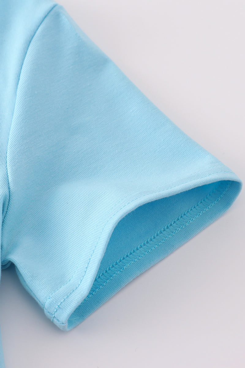 Blue farm embroidery smocked shorts set