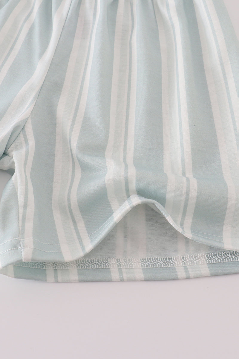 Blue flamingo embroidery short set