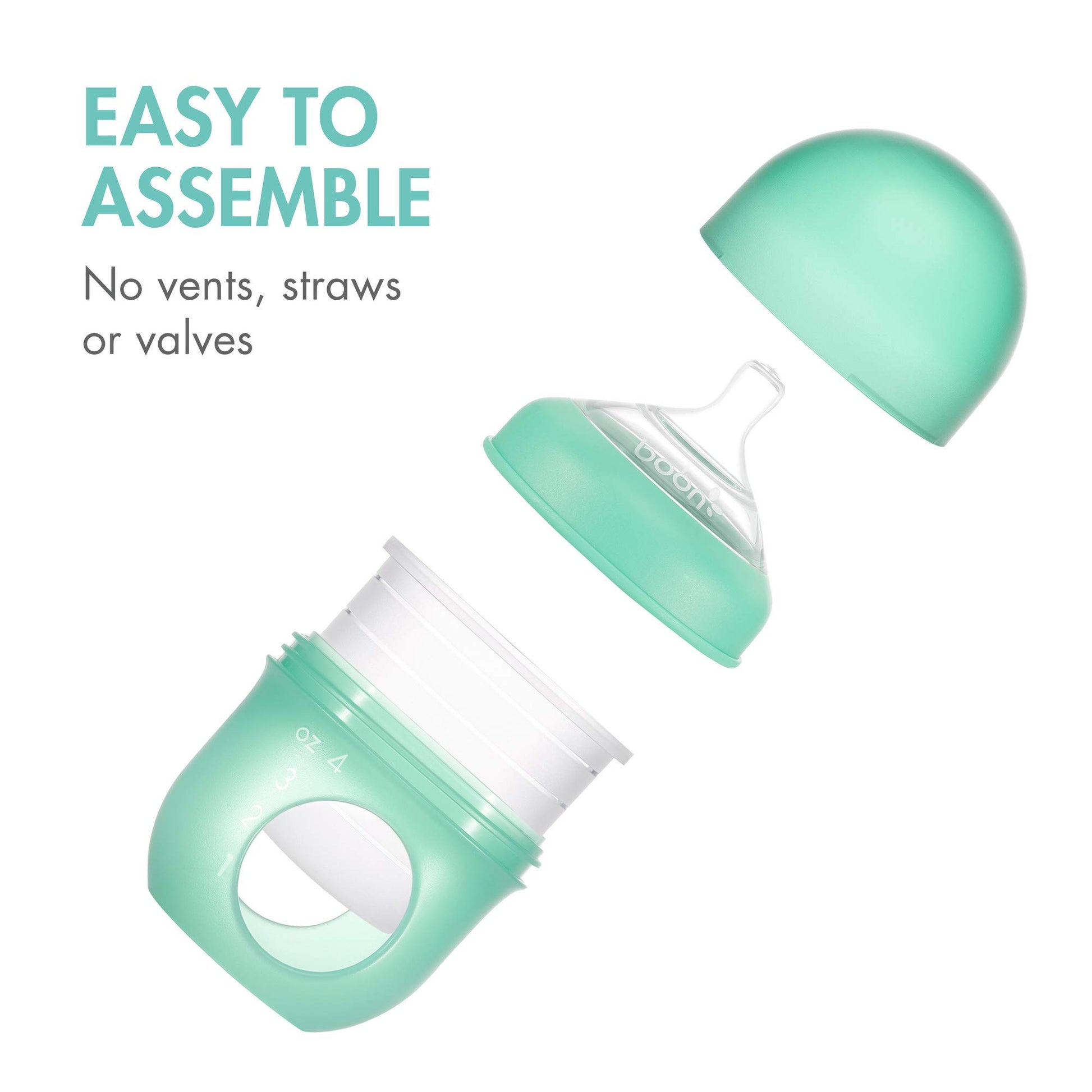 - Reduce Colic Symptoms: The clever design of Boon bottles features air-free feeding that prevents gas and spit up with a pouch that collapses as baby drinks; no need for complicated vents or valves