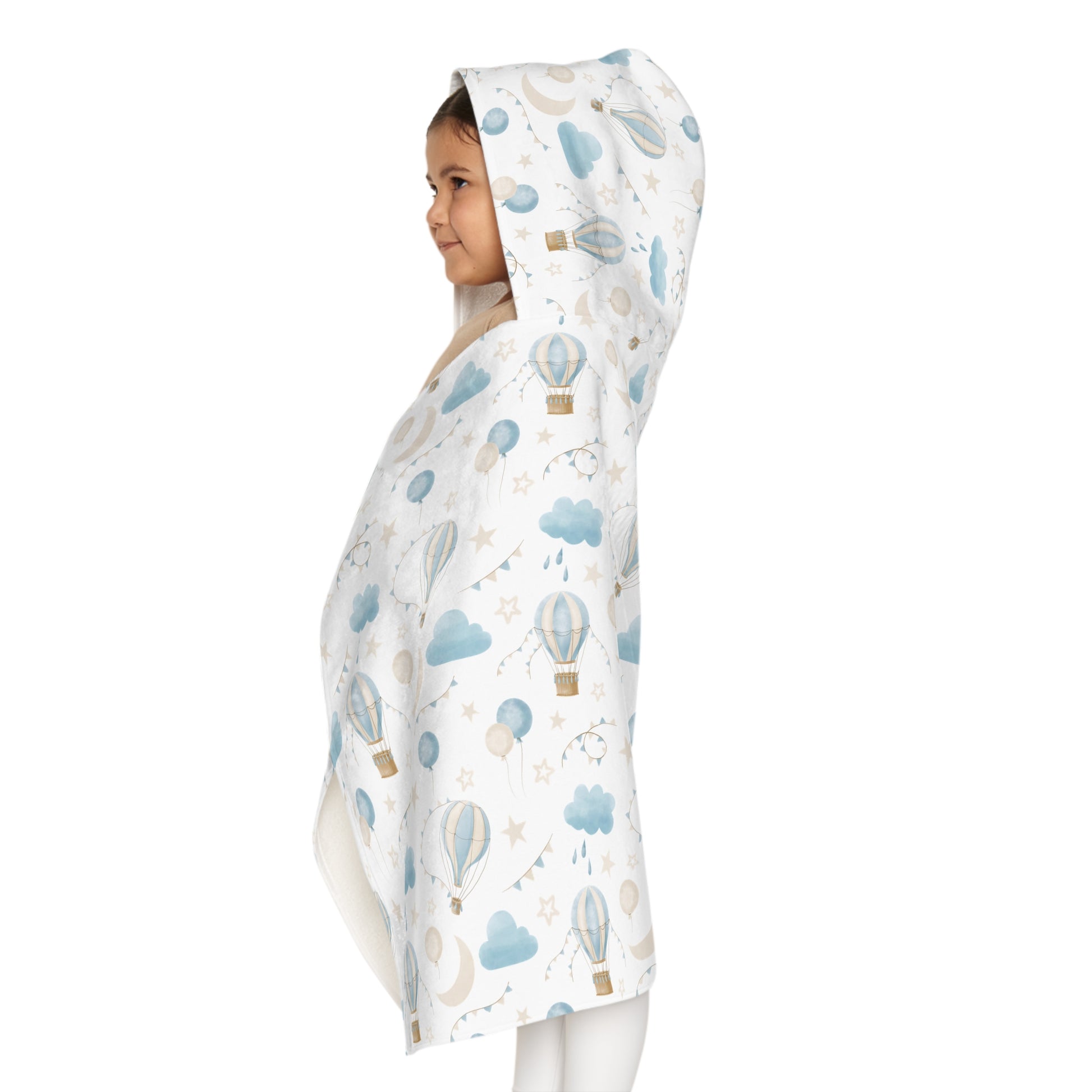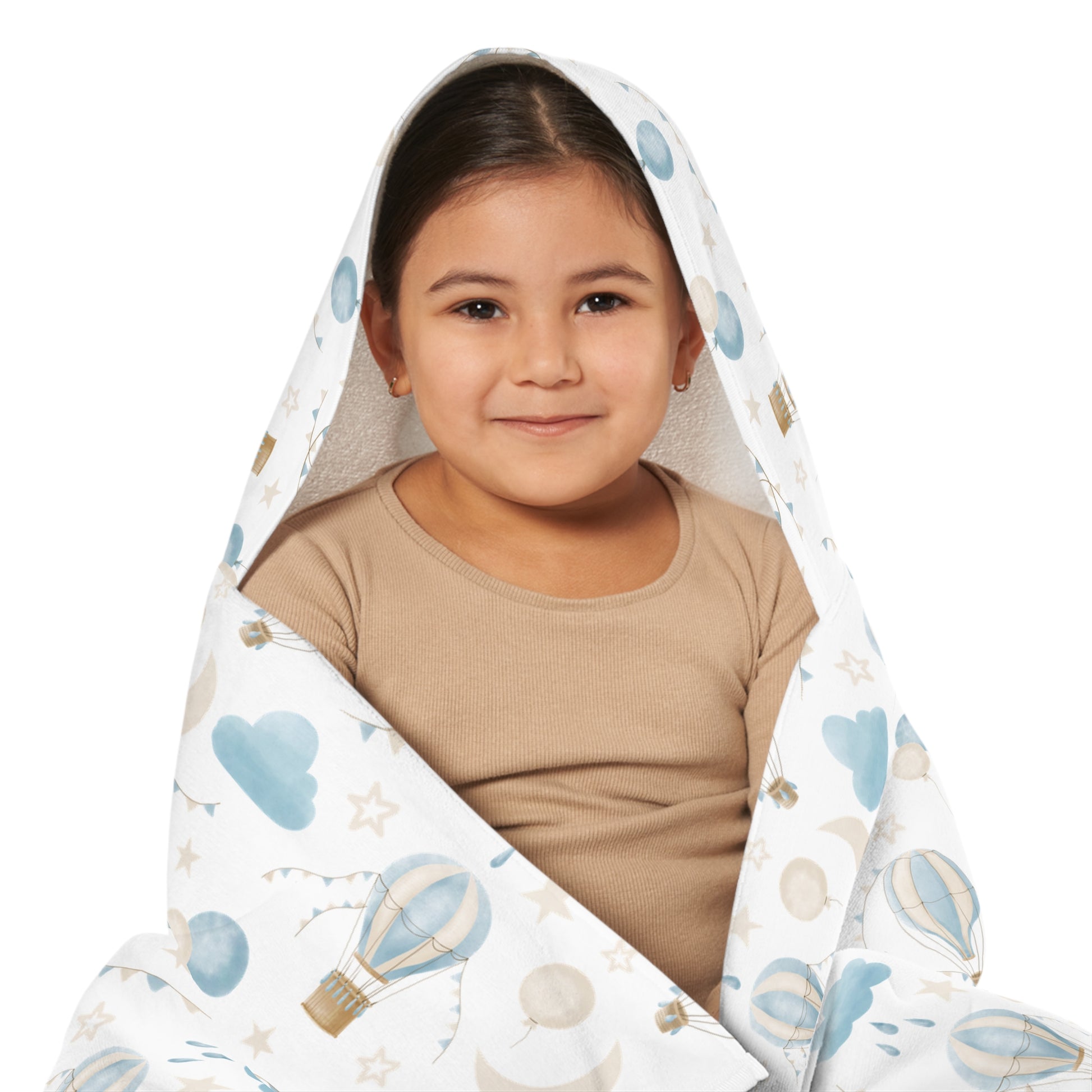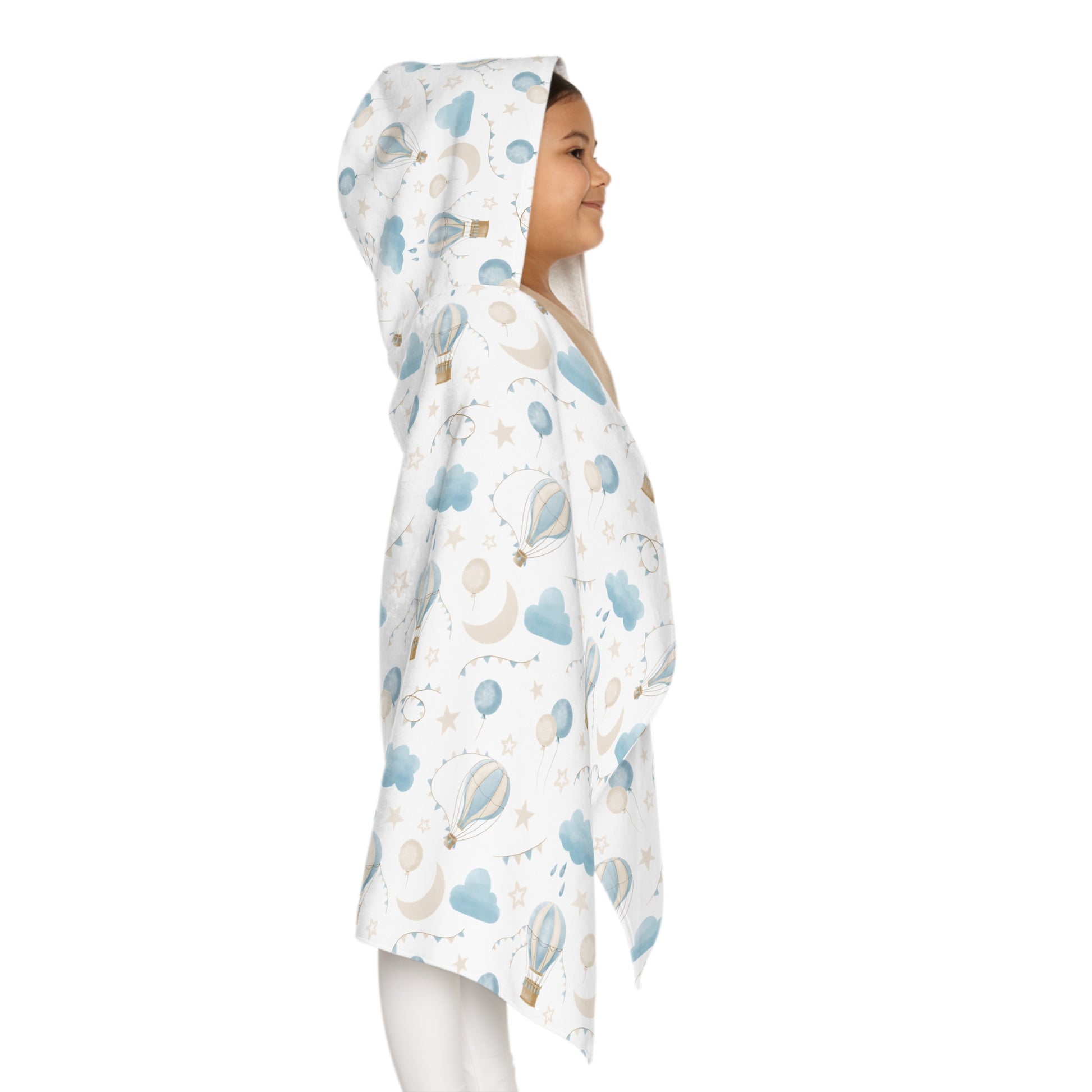 This Child Hooded Towel with Blue Air Balloons design is perfect for bath time or trips to the pool. The vibrant colors and all-over print will delight any child, and the soft cotton terry lining ensures excellent absorbency. The one size fits all design makes it a great gift for birthdays or baby showers.