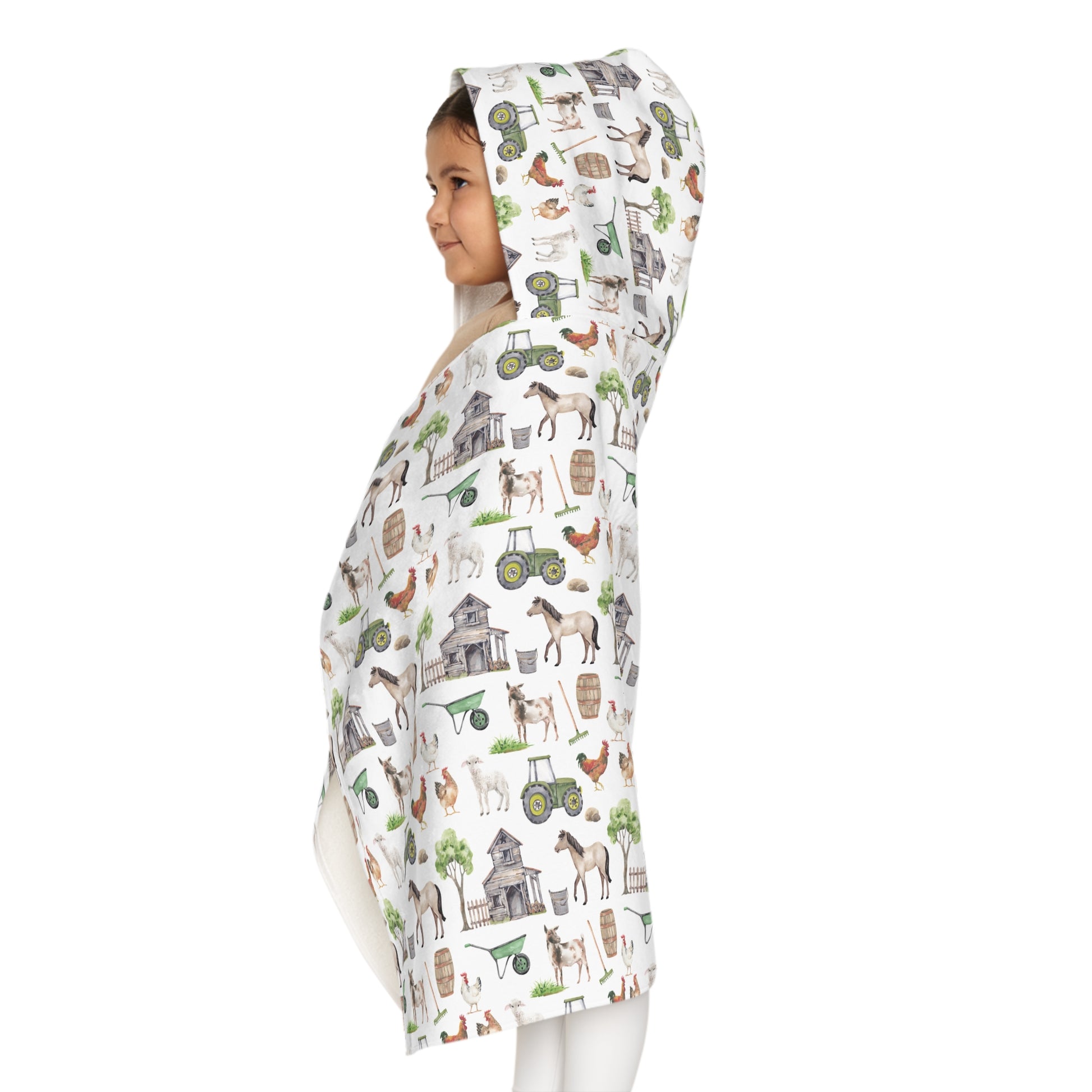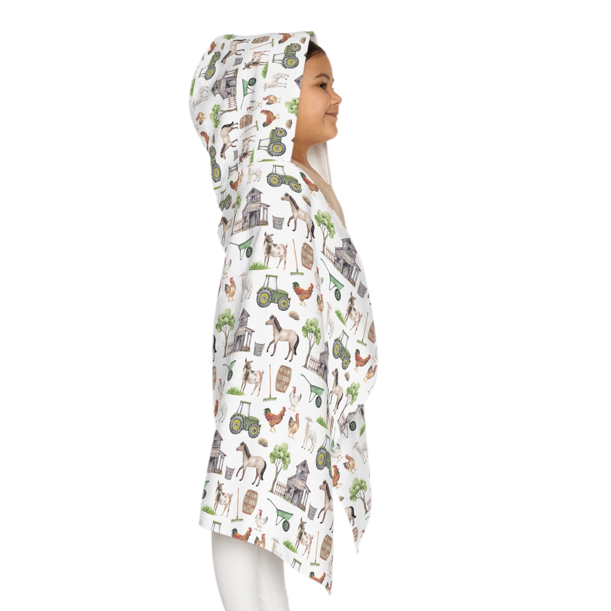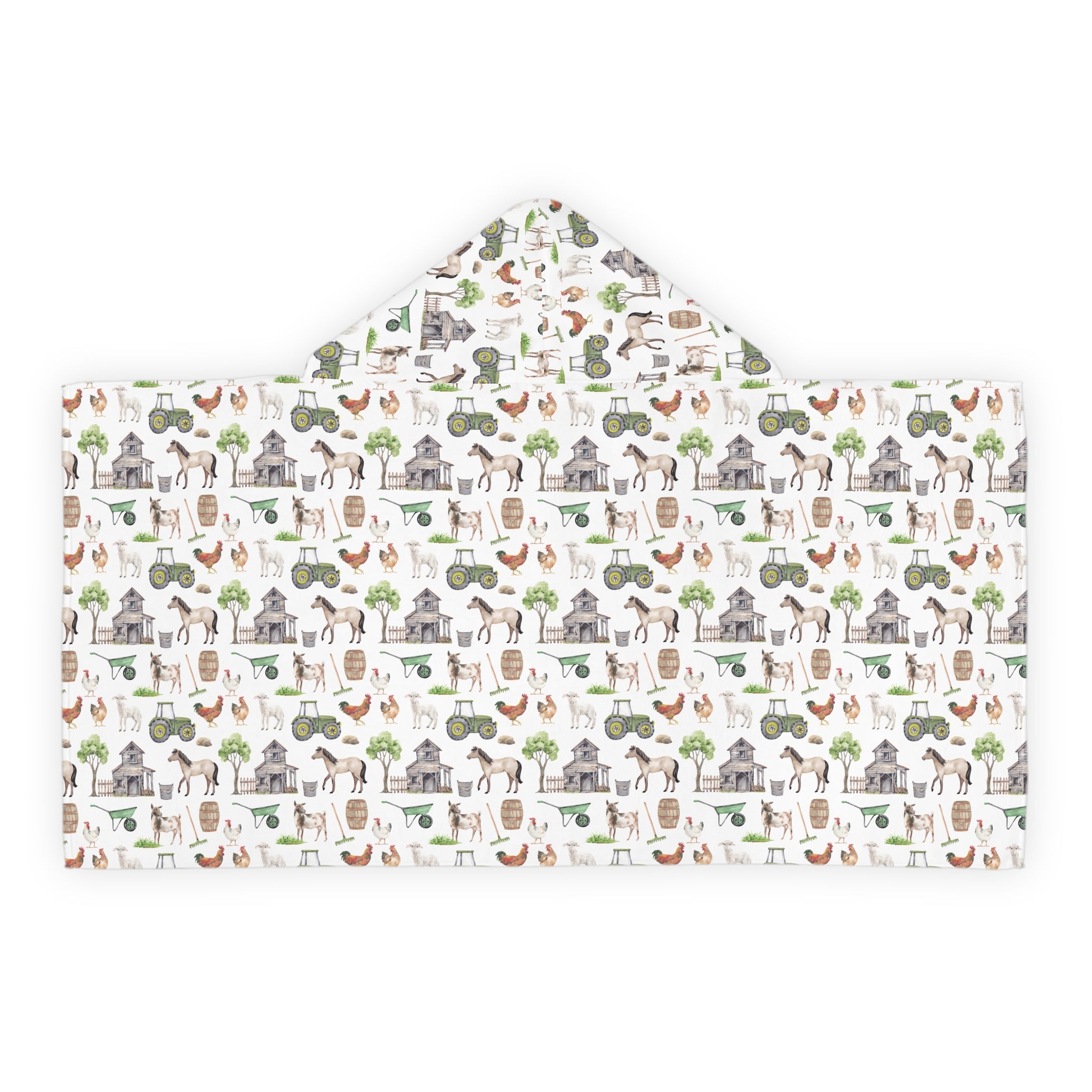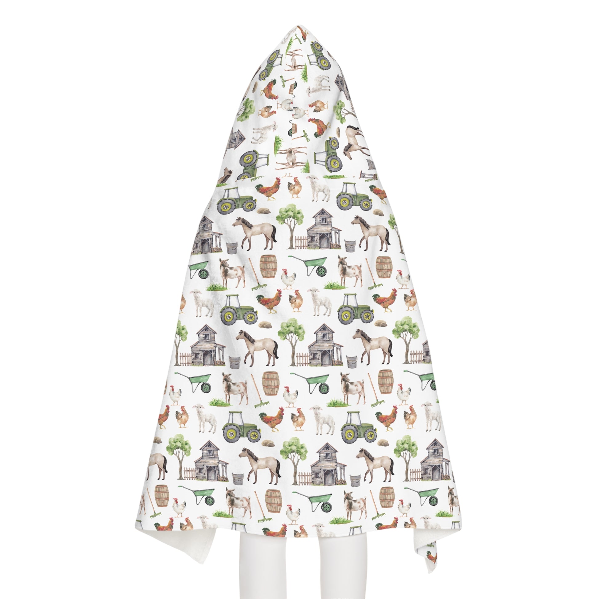 A cozy Child Hooded Towel featuring a Farm Life design, perfect for bath time or pool days. Ideal for kids who love animals and farm scenes. Great for gifting on birthdays, holidays, and as a baby shower present.