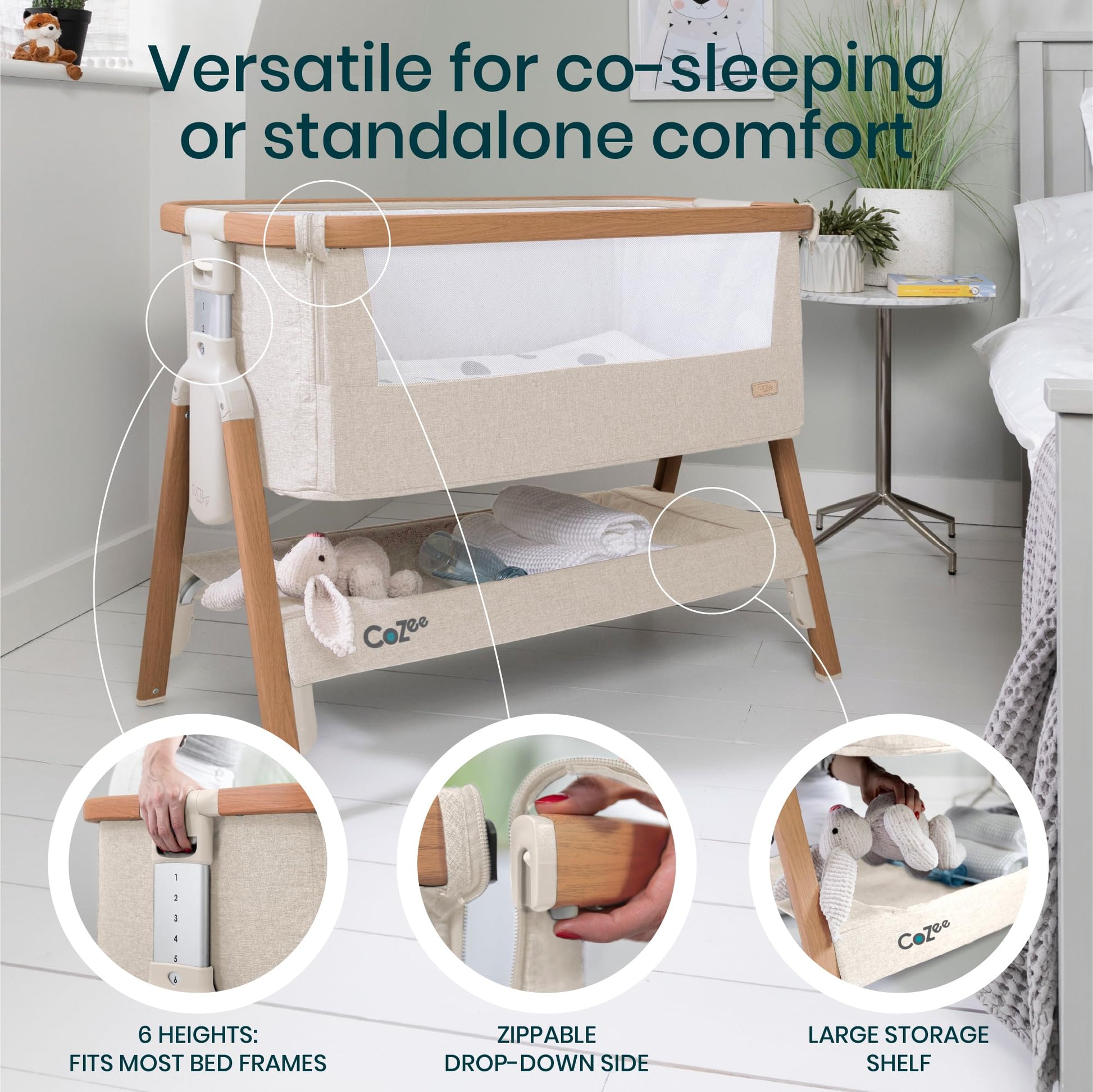 - 2-IN-1 BEDSIDE BASSINET & CRIB - Sleep soundly and safely, side by side or separately, from birth to 6 months with the CoZee, our versatile bassinet bedside sleeper and travel crib! Made from high-quality materials, the stylish travel bassinet blends seamlessly with a modern nursery. JPMA certified and compliant with ASTM/CPSC standards.