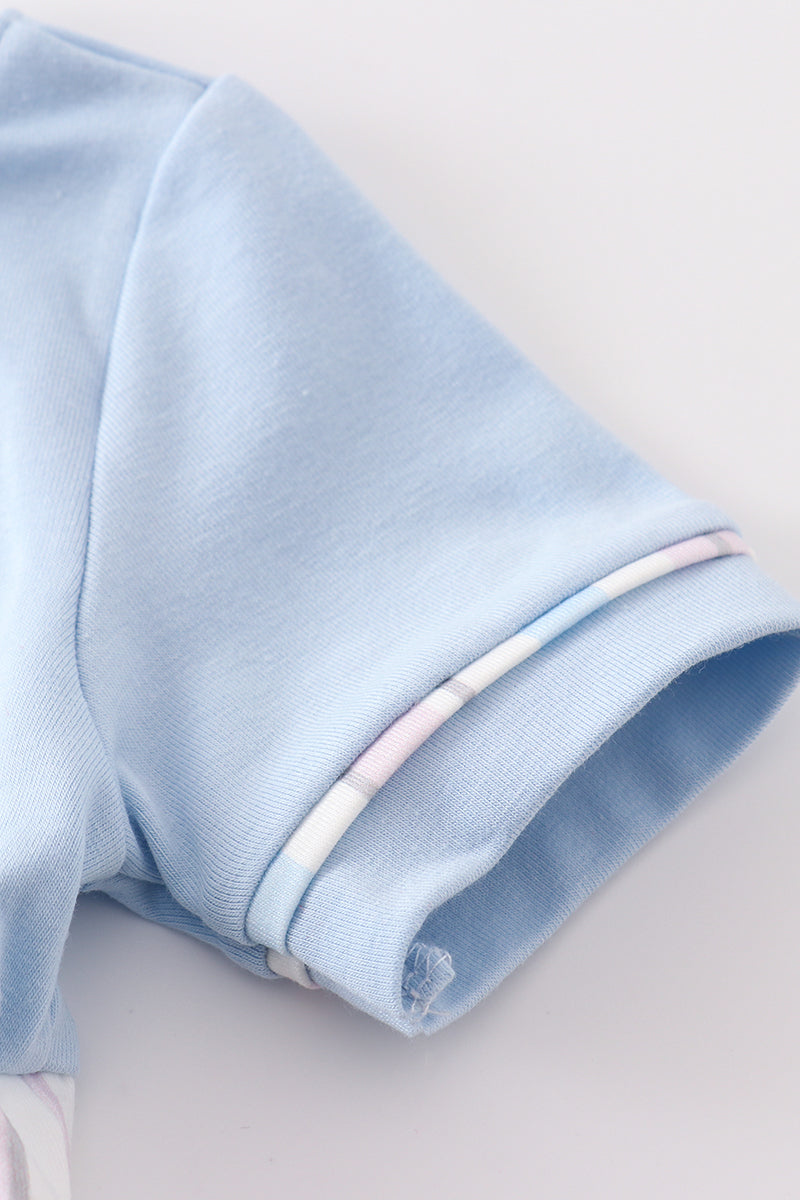Get ready for a seaside adventure with our Crab french knot stripe boy bubble! This charming outfit features playful crab embroidery and a classic striped pattern. Perfect for your little one's summertime fun, this bubble is sure to make a statement (and keep them comfy too)!