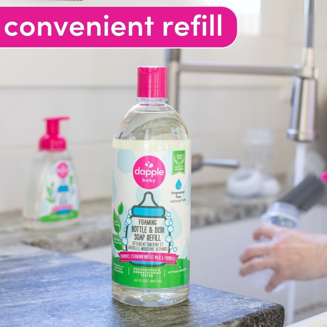 - MULTI-USE AND SPECIALLY FORMULATED TO CLEAN RESIDUE FROM MILK AND FORMULA: Dapple Baby Foaming Bottle & Dish Soap is specially formulated to remove stubborn milk film and odor.