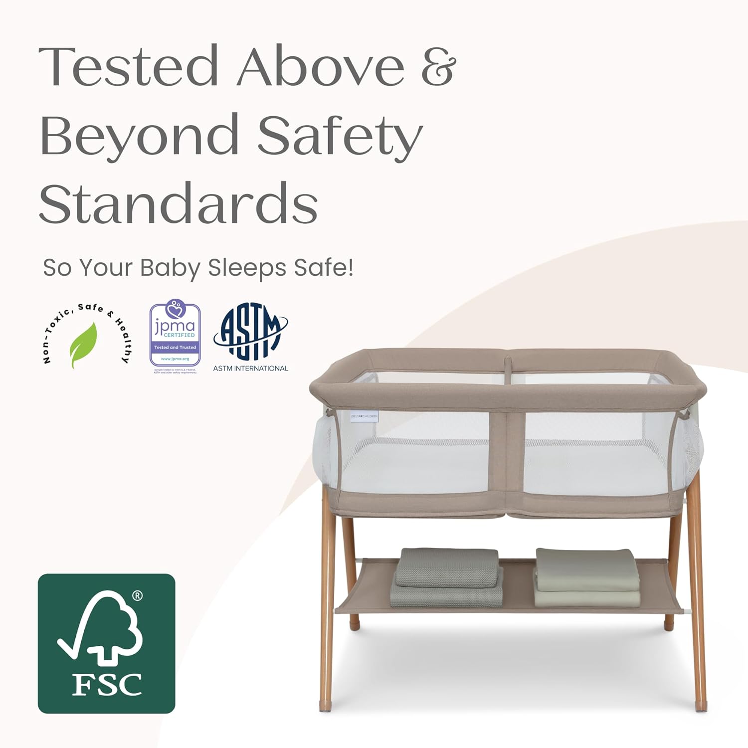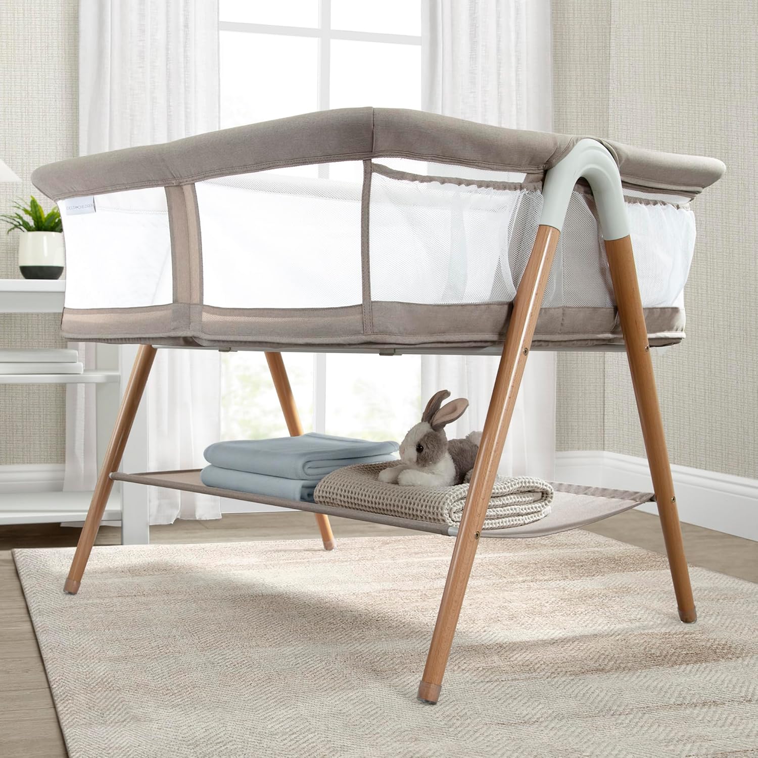Bondi Beechwood Twin Bassinet with PureAir Breathable Mesh Sheet and FSC-Certified Wood, Tan