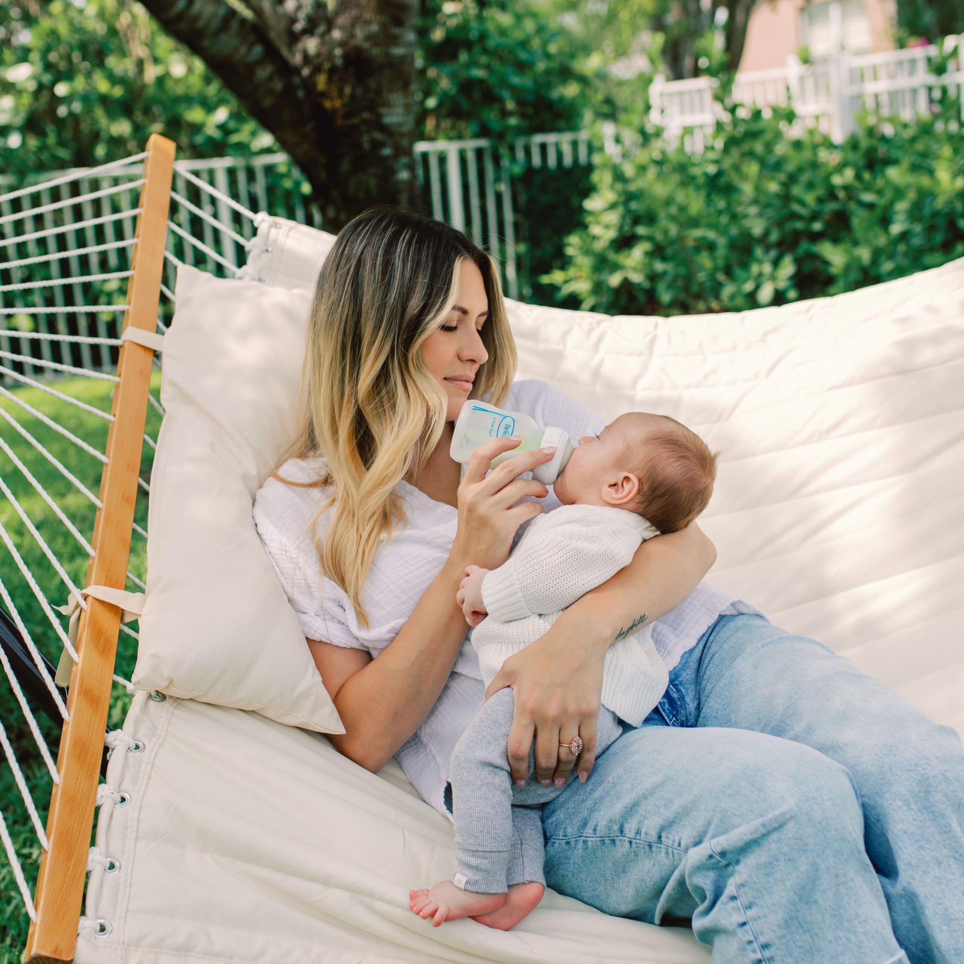 - BREASTFEEDING BOTTLE. The breast-like nipple shape encourages a proper latch for a more natural bottle feeding experience and eases the transition from breast to bottle and back again.