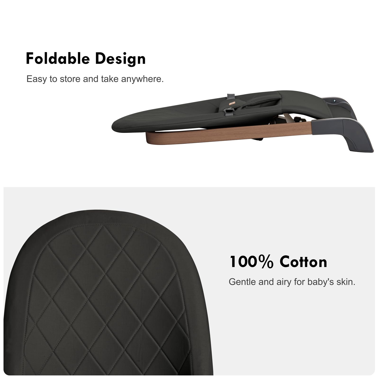 - Foldable & Portable - Folds flat to 5" thickness in seconds, this lightweight baby bouncer folds quickly into a compact size. Store it in a closet, or take it anywhere-an excellent solution for travel, small spaces, or quick cleanup.