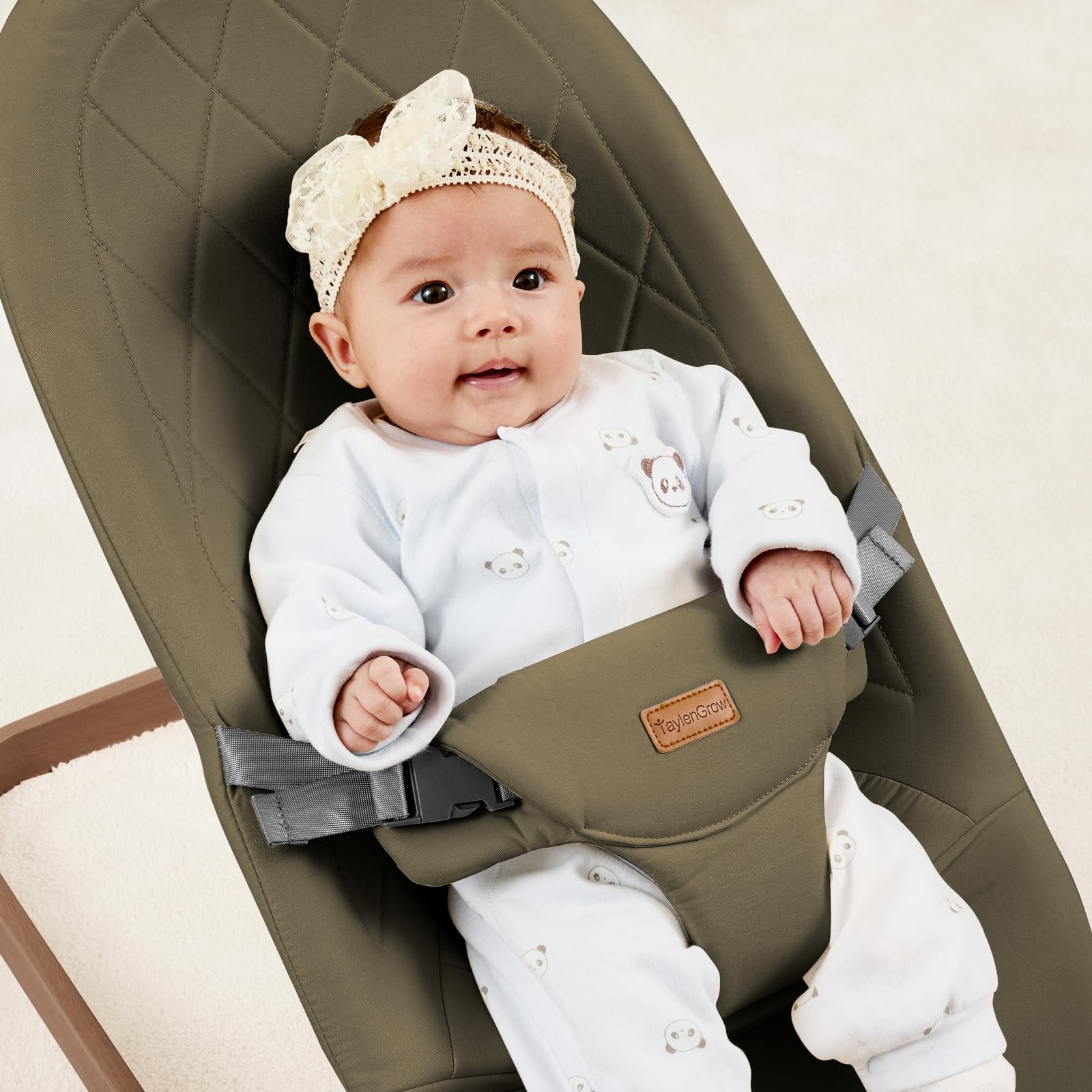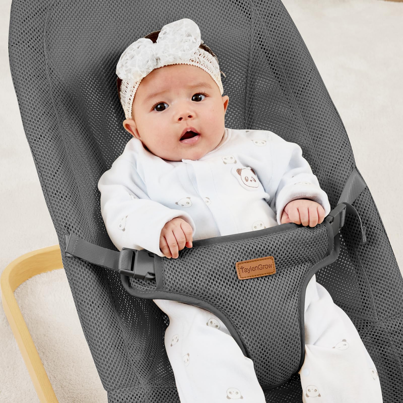 - Safe Baby Rocker with 3-Point Harness - ASTM certified frame + adjustable 3-point secure buckle. Non-slip base grips tile/wood/carpet. Sturdy steel frame tested for baby weight up to 20 lbs. A versatile choice for newborn naps or toddler playtime.