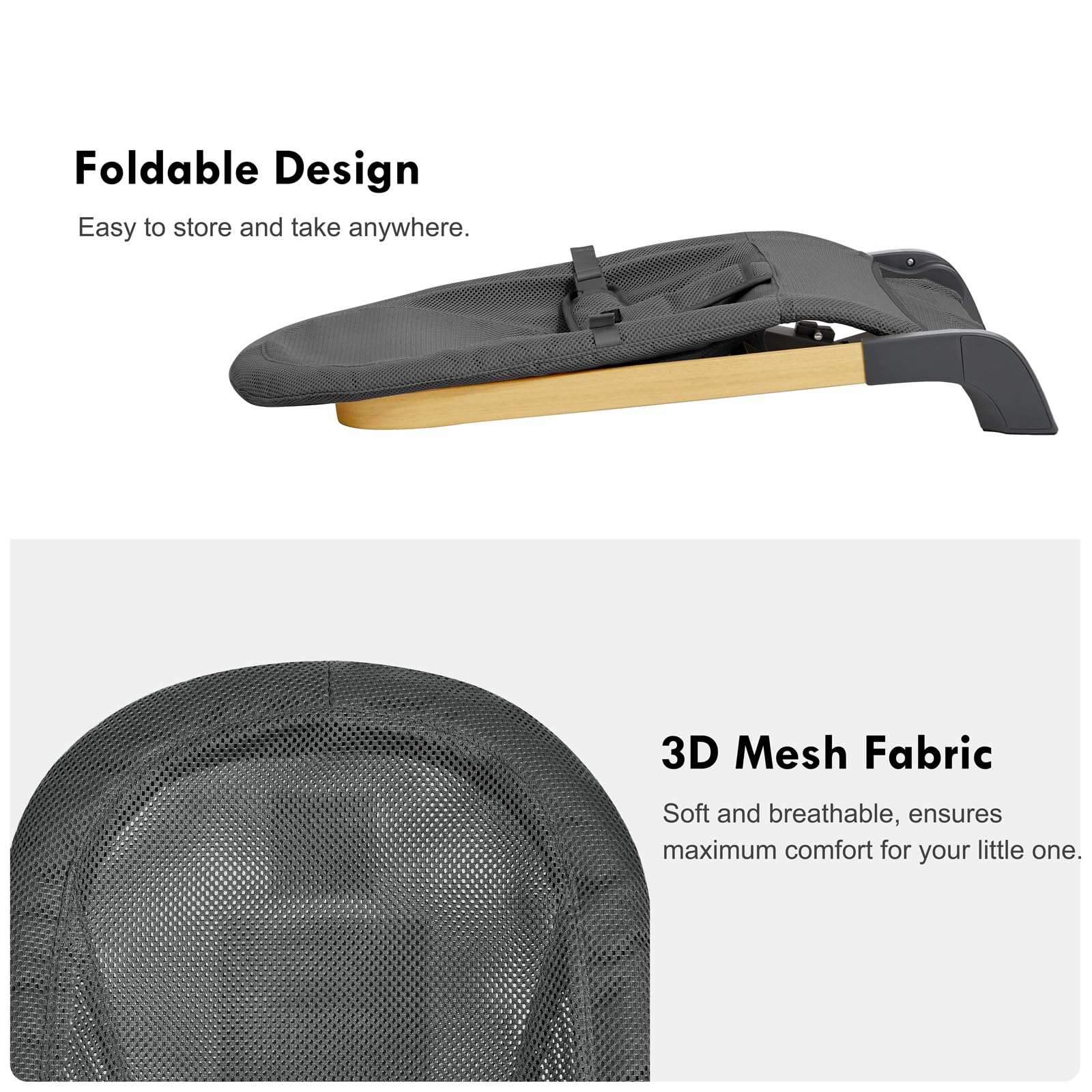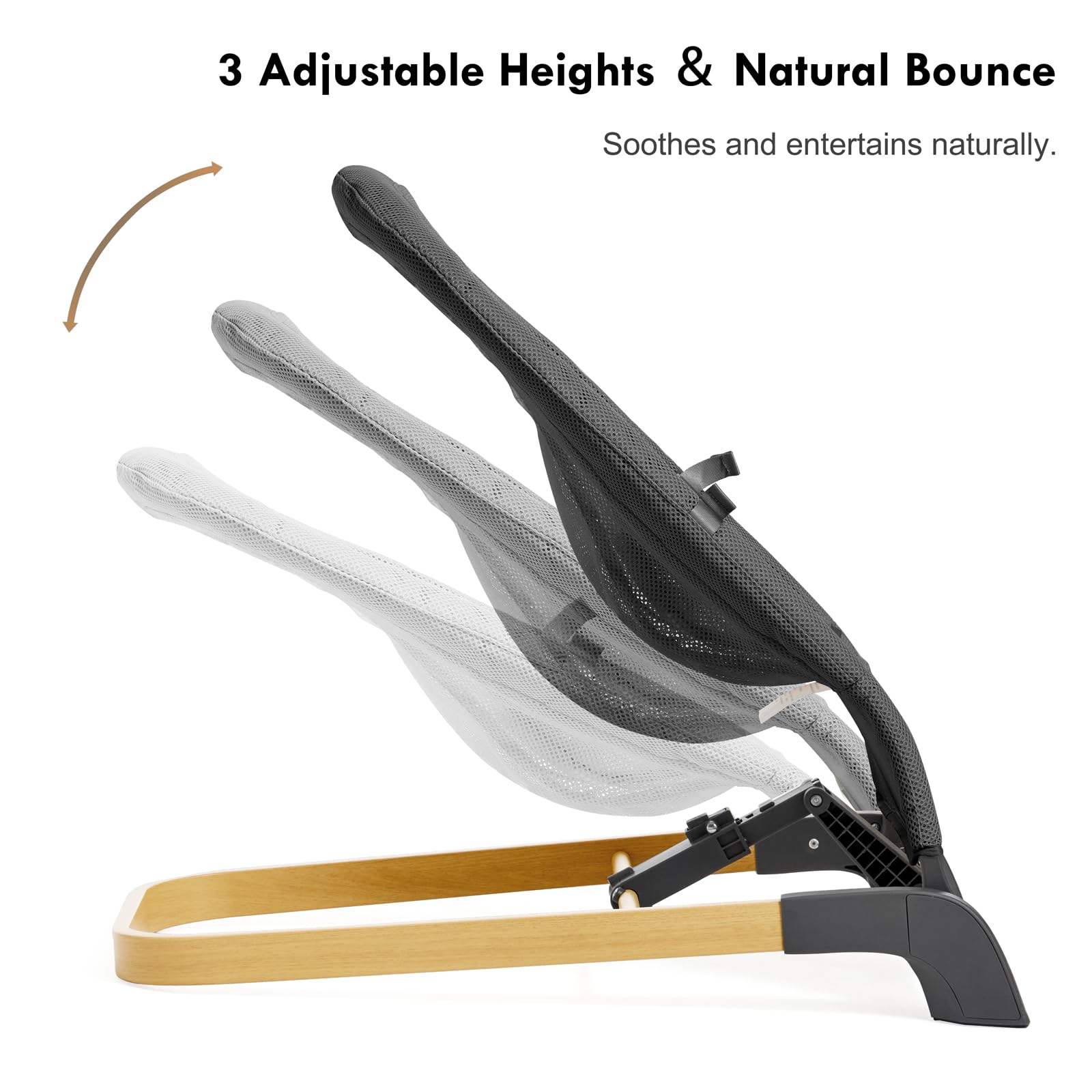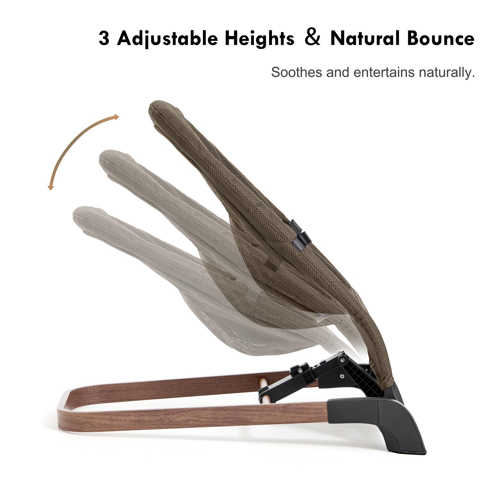- Natural Bounce & Ergonomic Support - The baby bouncer responds to your baby’s natural movements, creating a gentle rocking motion. The ergonomic seat provides a comfortable and healthy position for newborns, while the sturdy frame ensures safe and stable rocking.