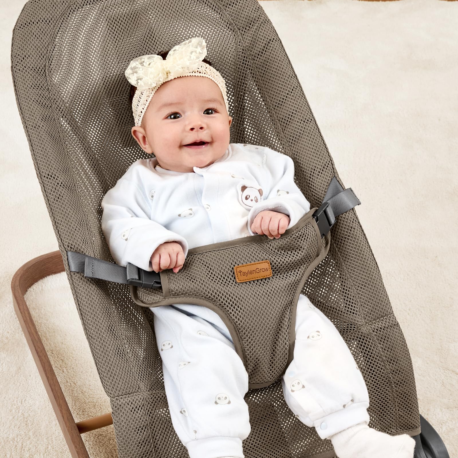 Foldable Baby Bouncer, Baby Seat with 3 Adjustable Heights, Portable Newborn Rocker