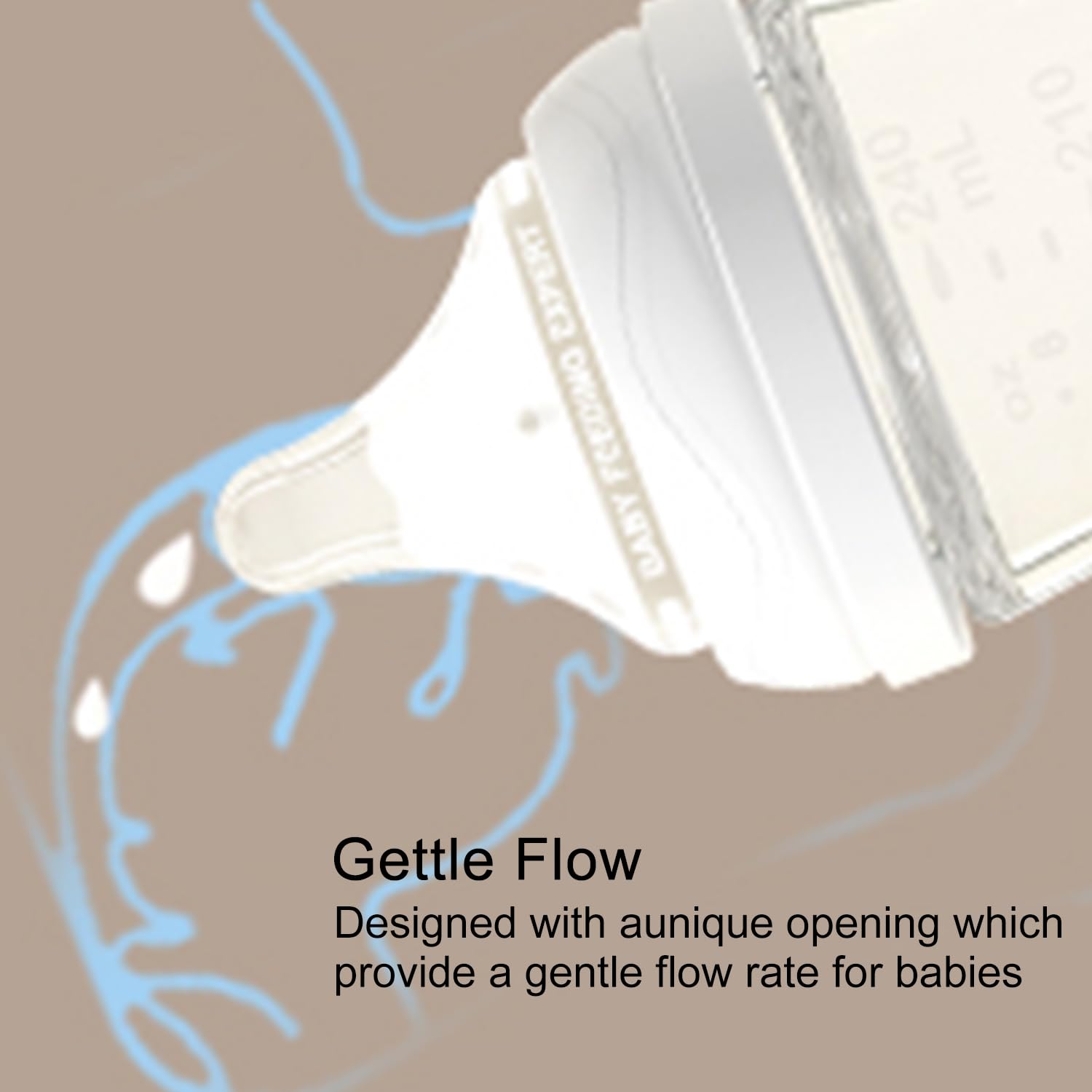 - Soft and Anug-Fitting Nipple:The soft nipple is designed to mimic the shape of the breast, ensuring a snug fit in the baby's mouth while allowing for natural breastfeeding movements—making it easy to switch between breastfeeding and bottle feeding;