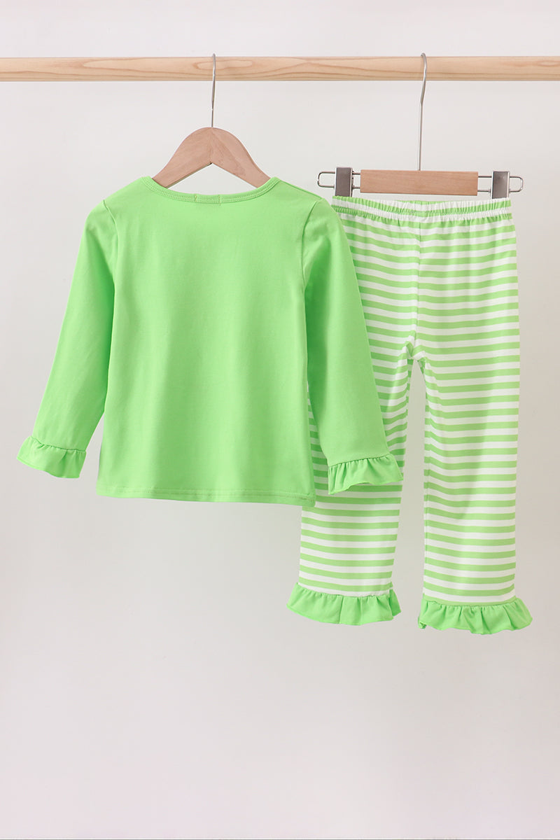 Get cozy in style with our Green Grinch Embroidery Ruffle Pajamas Set! Featuring charming Grinch embroidery and playful ruffle details, this set brings a fun twist to your bedtime routine. Soft, comfy fabric ensures a snug fit perfect for relaxing or festive lounging. Embrace holiday cheer with a cheeky touch that’s as comfortable as it is cute!