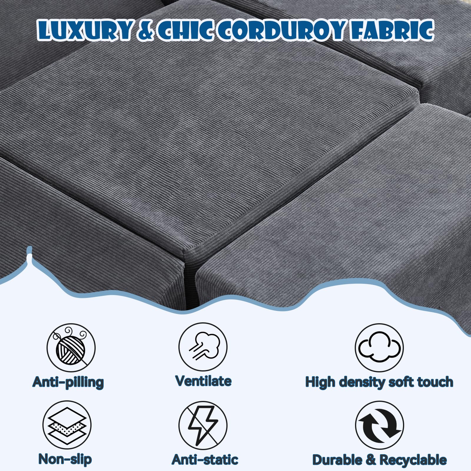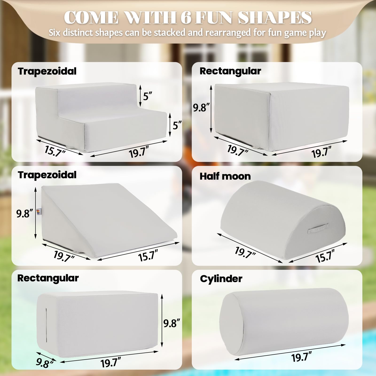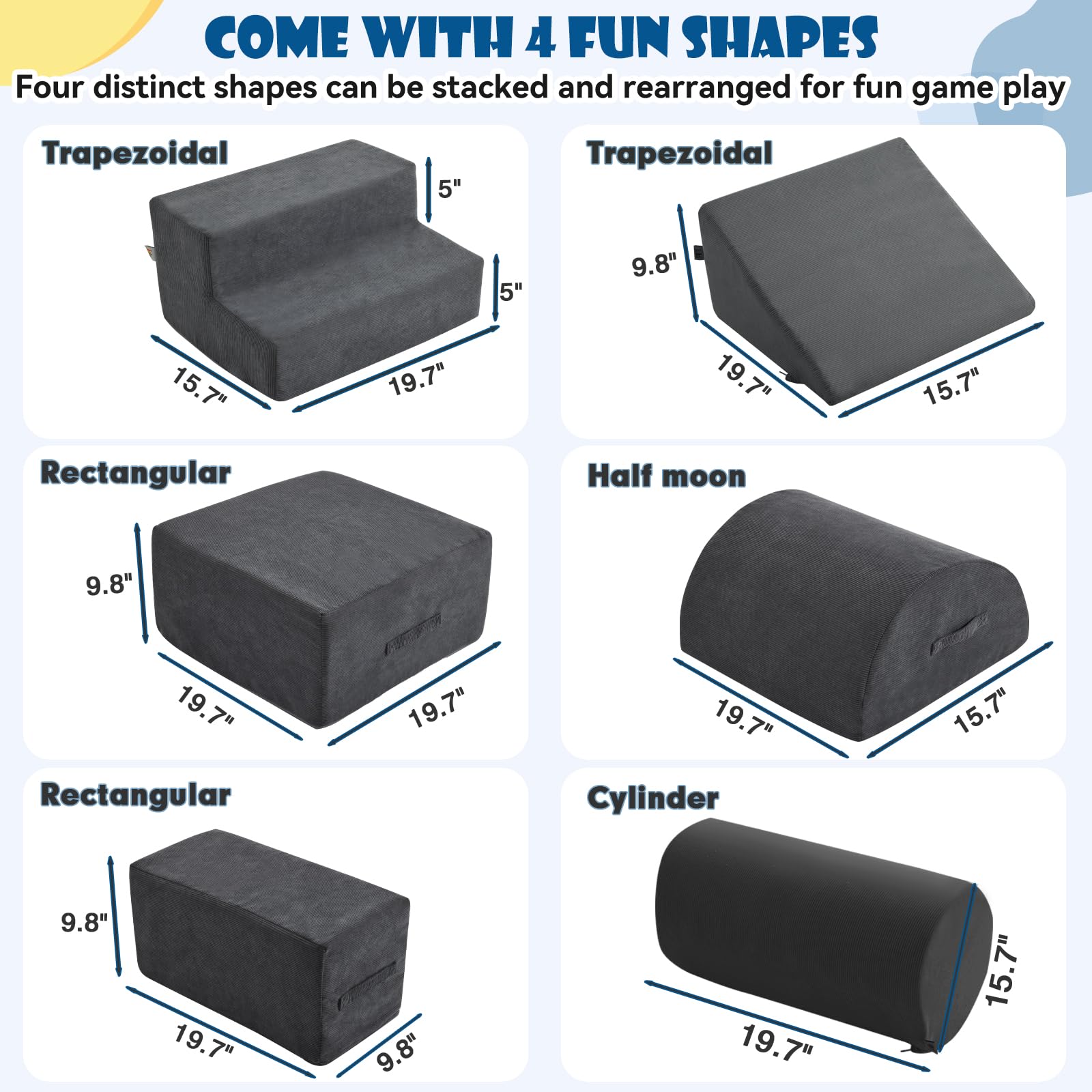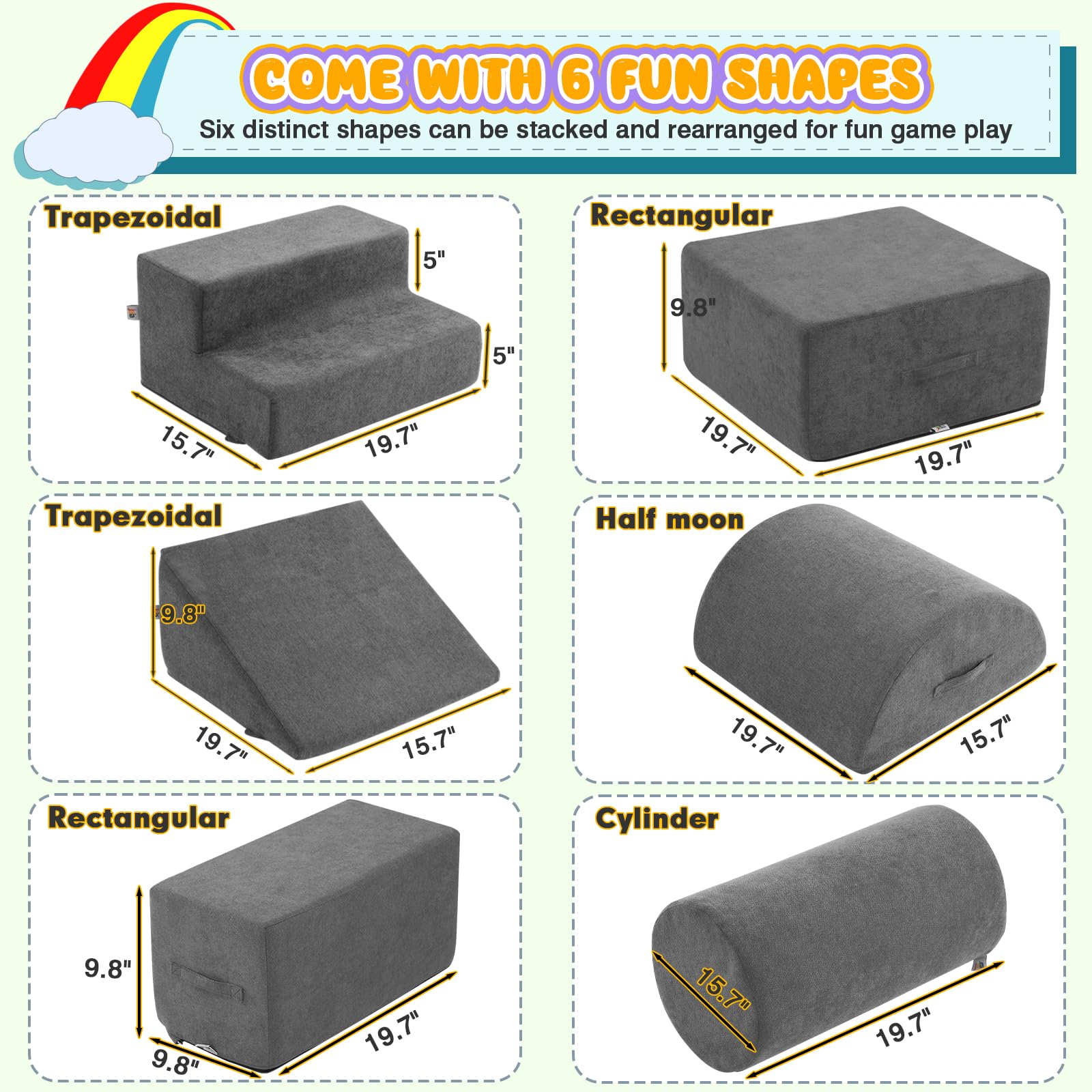 jela Foam Blocks 6Pcs Soft Play Equipment Waterproof Fabric, UV Resistant Toddler Climbing Toys Indoor& Outdoor Soft Play Climbing for Toddlers, Lightweight Climbing Blocks for Babies, Kids (Darkgrey)
