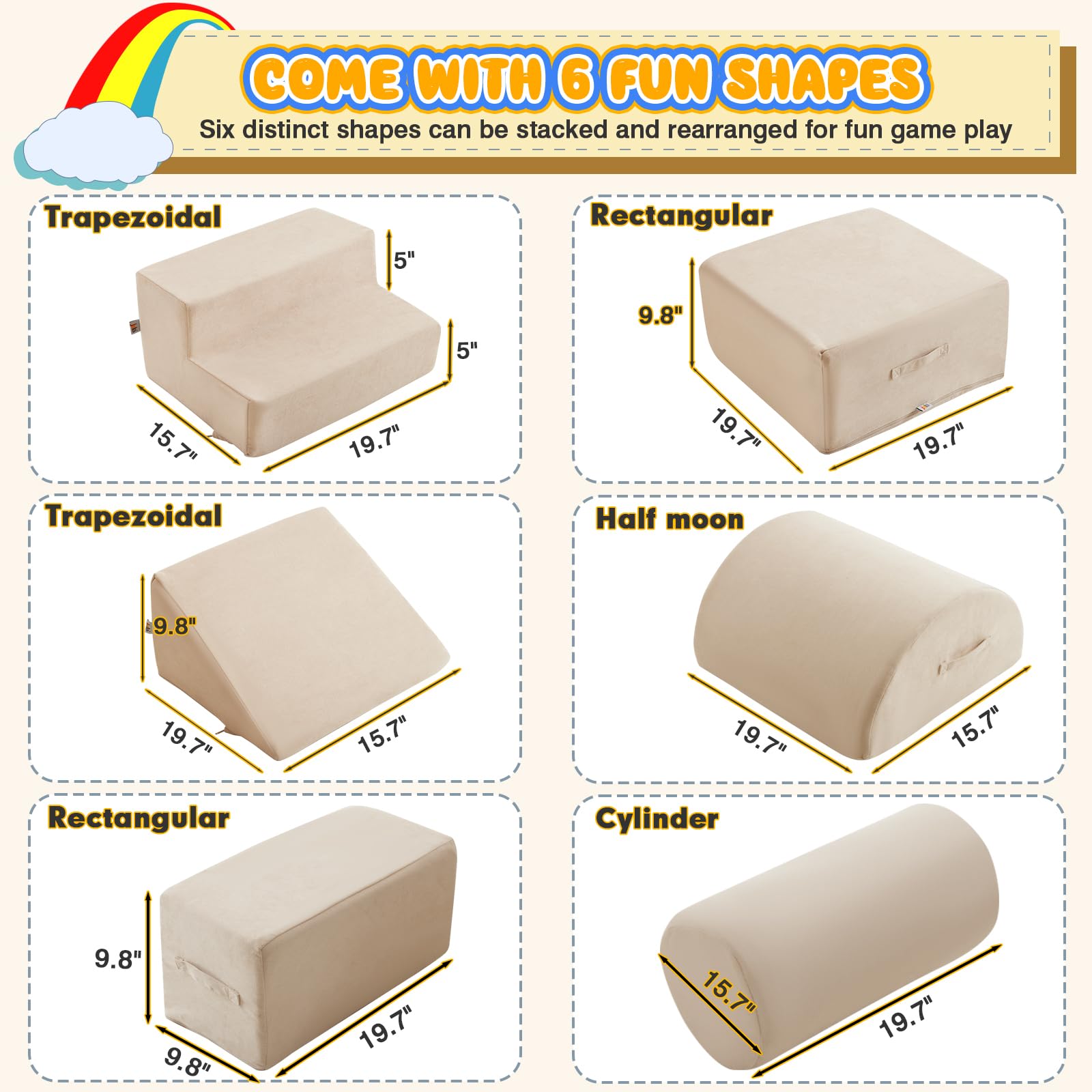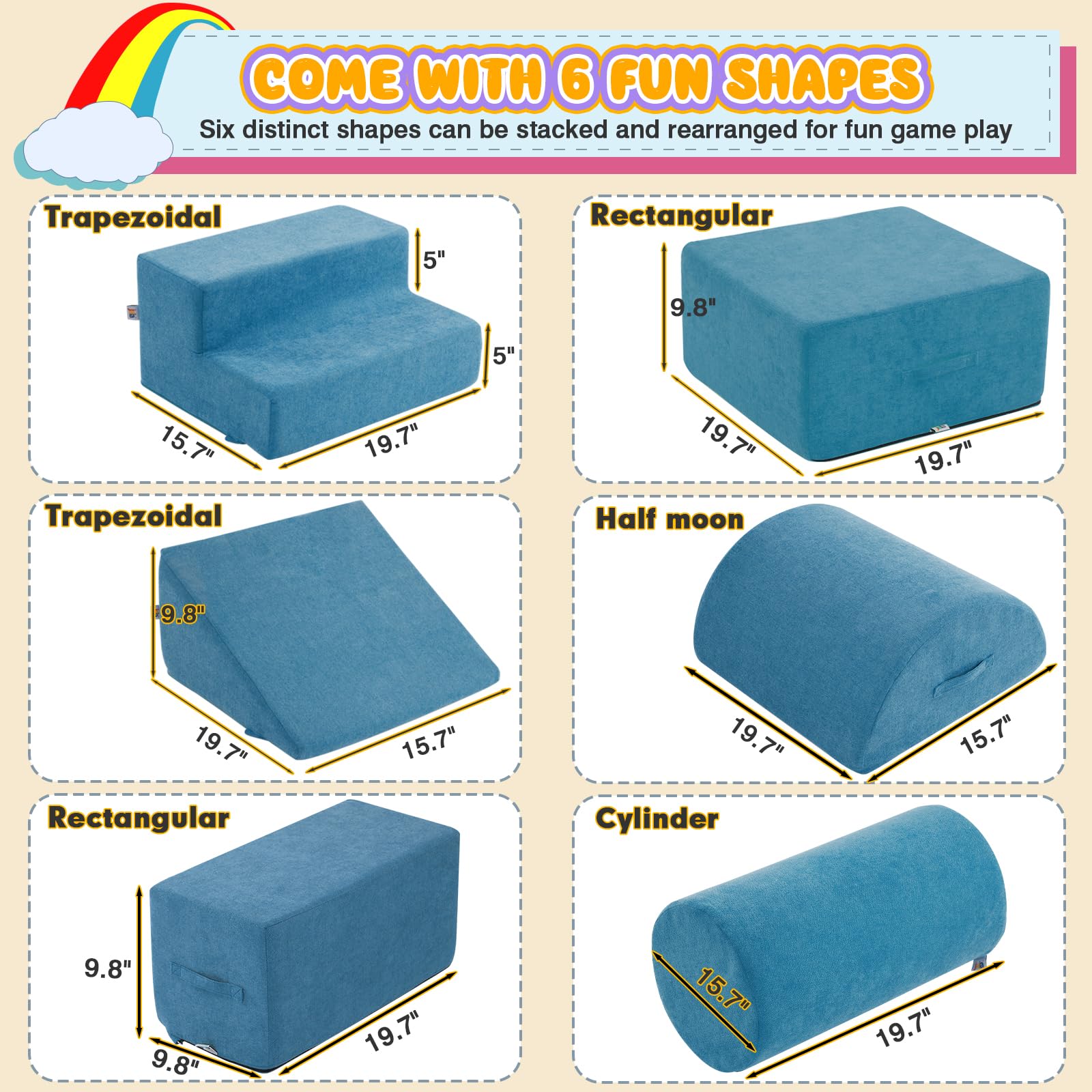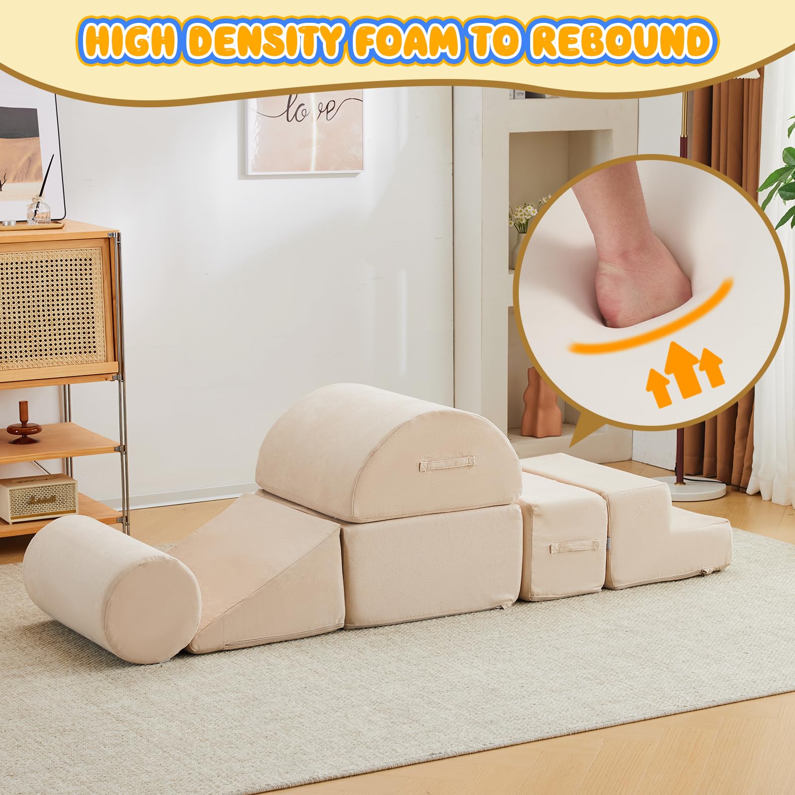 - HIGH DENSITY FOAM SUPPORT: 28D high density foam with excellent bounce and support for long-year use instead of usual hard cheap foam in market which can not bounce back called disposable foam.Our foam climbing blocks are more suitable for kids to climb, crawl, glide and play blocks. Our parents can be more assured that their child can wildly have fun on this toddler foam climbing blocks.