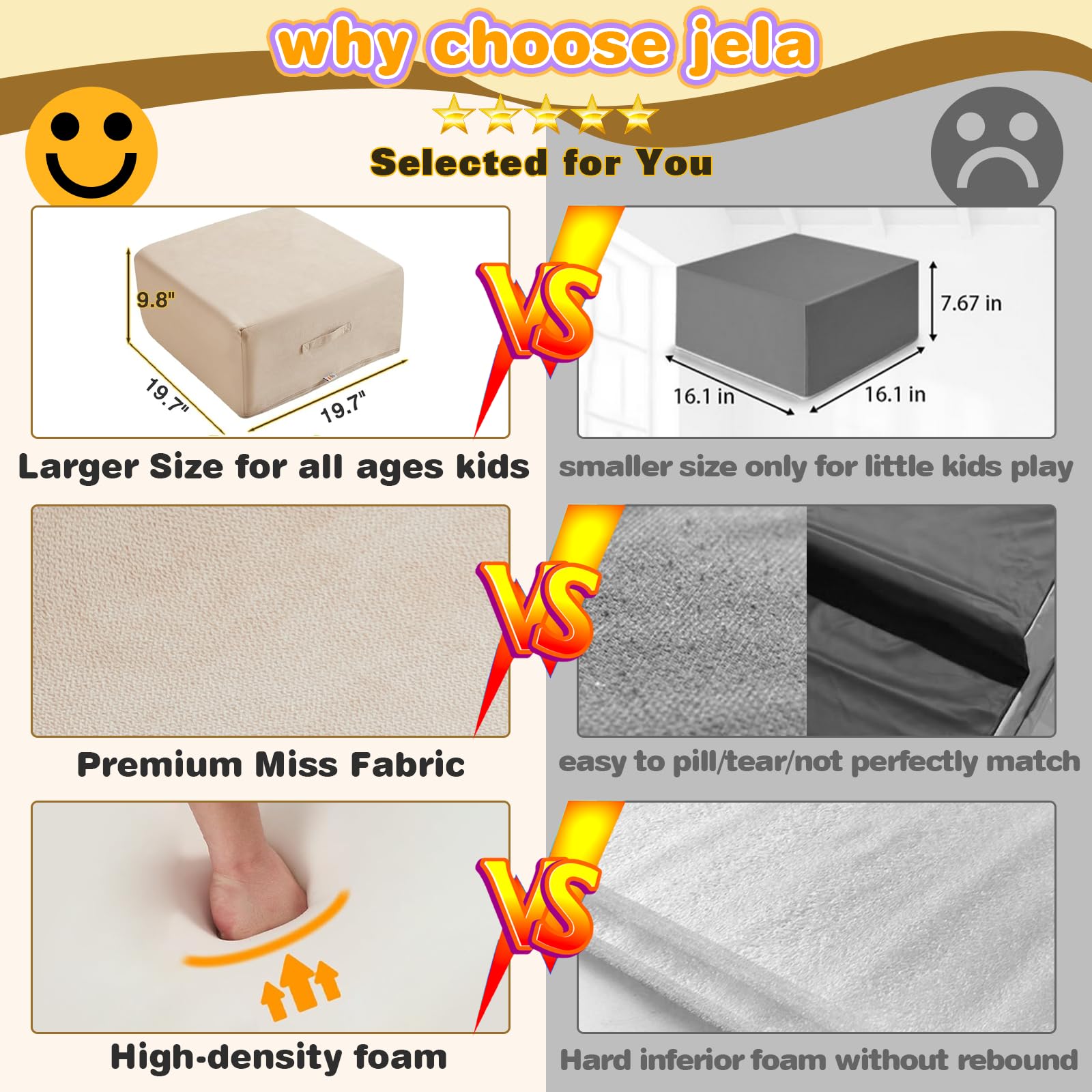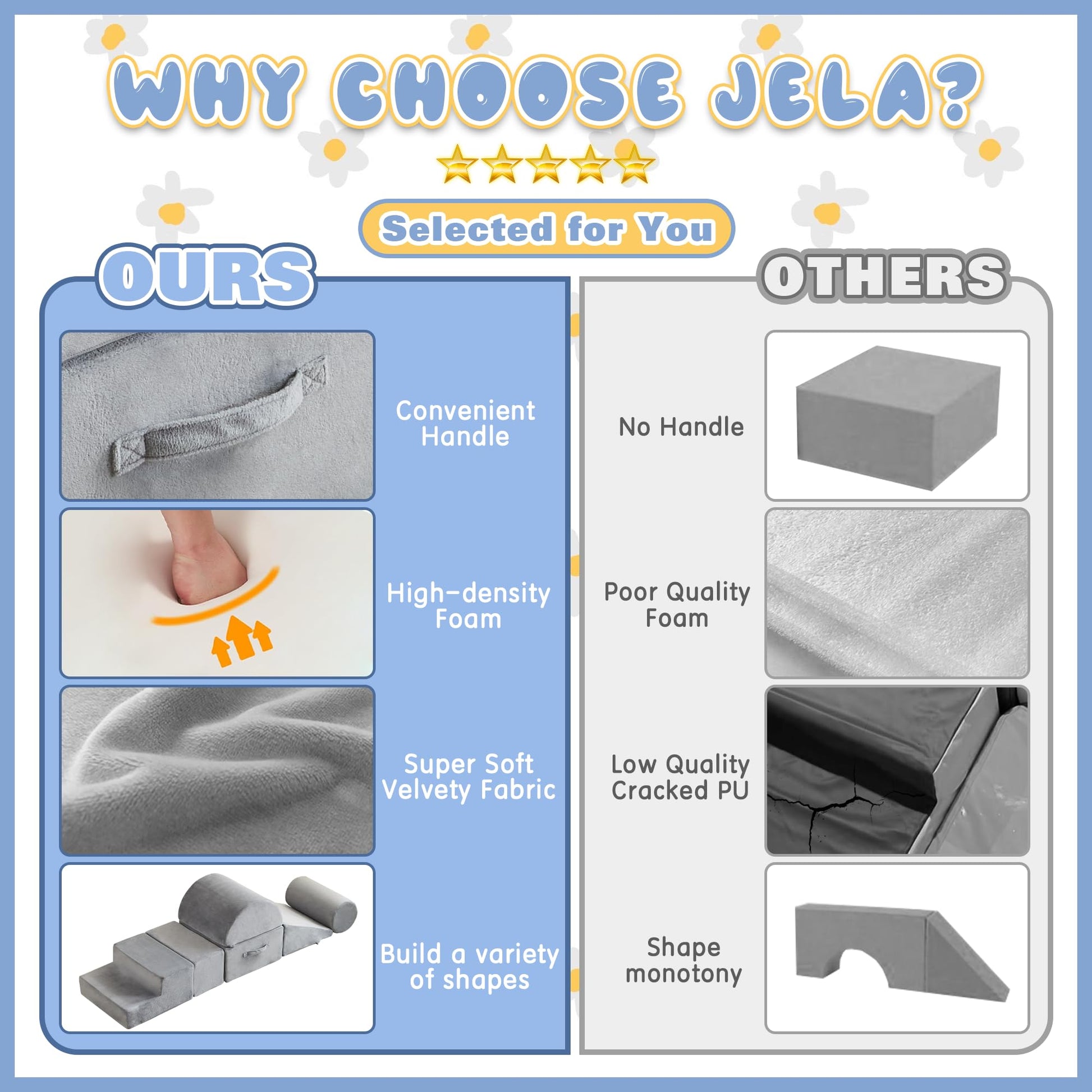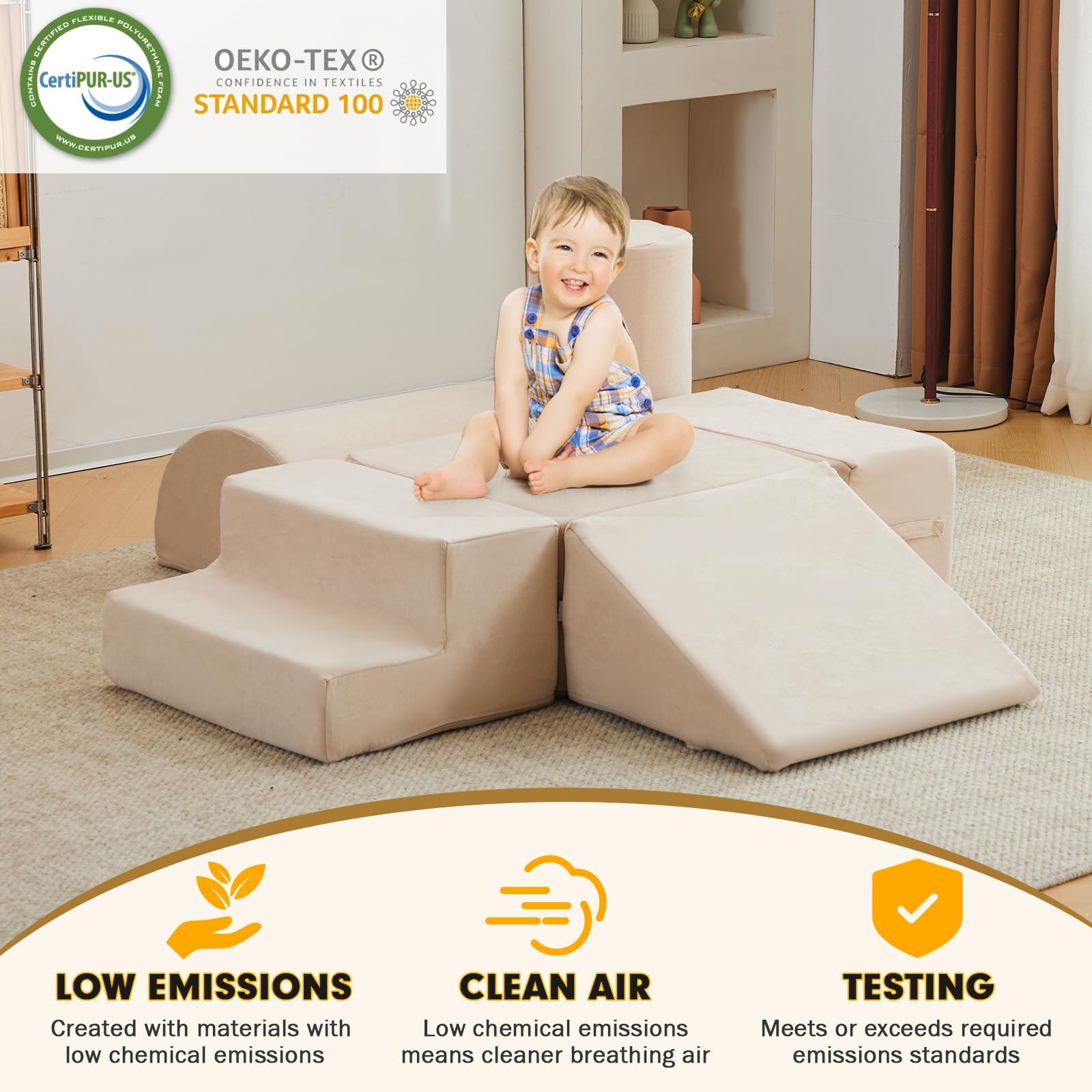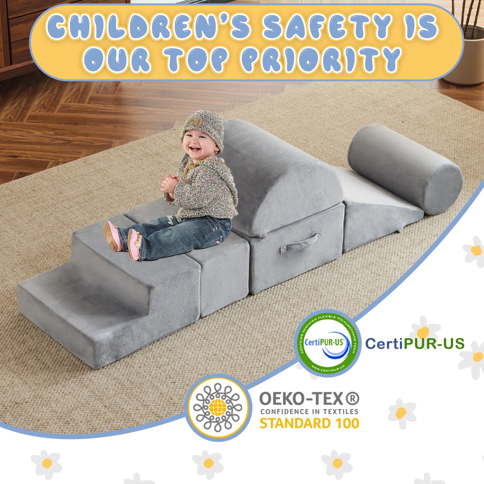 - Safety Certification: The jela foam climbing blocks are double-certified by CertiPUR-US and OKEK-TEX! They are non-toxic, eco-friendly, and odorless. Every playtime with these baby climbing blocks keeps children away from chemical threats, allowing babies to chew and grasp them with peace of mind. Create a pure and healthy play space for your children.