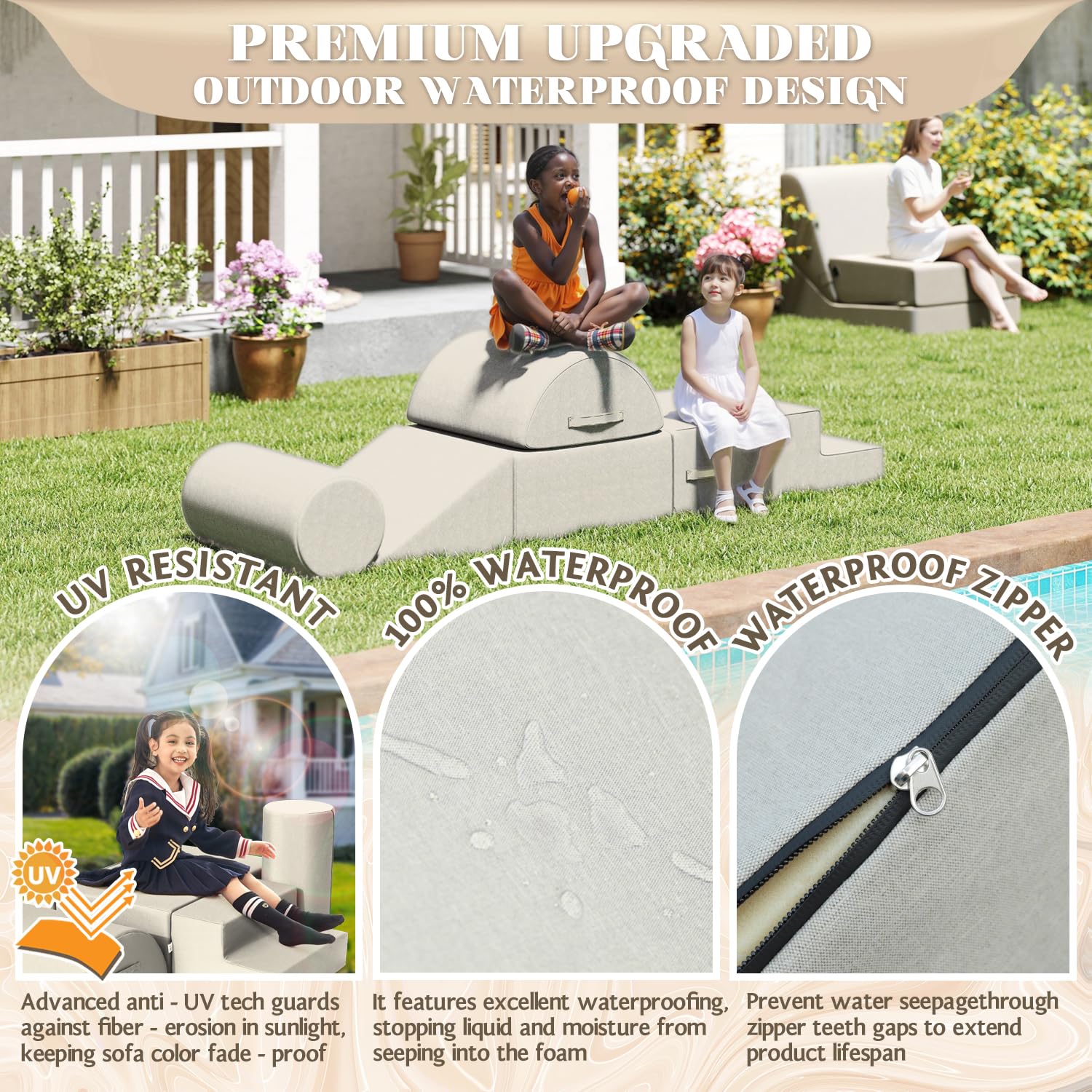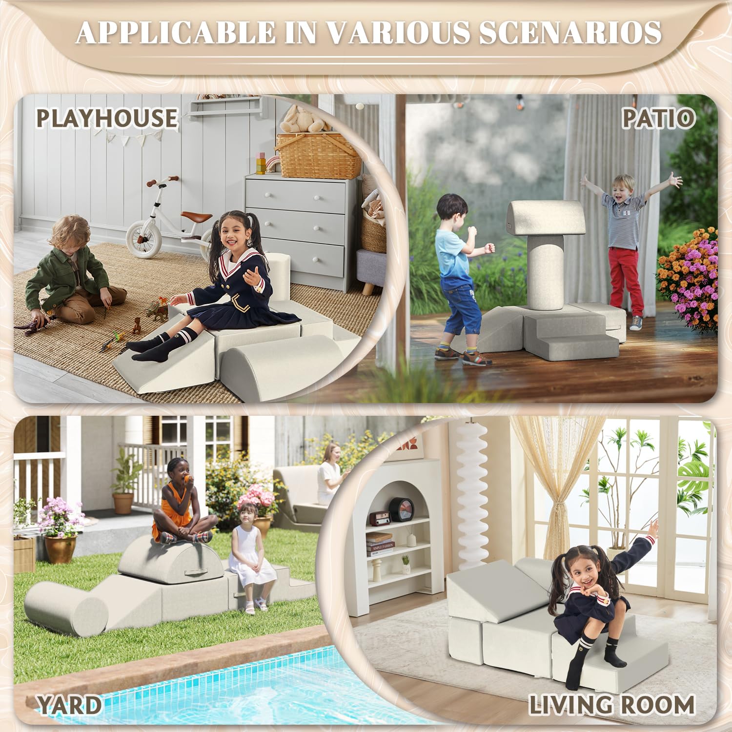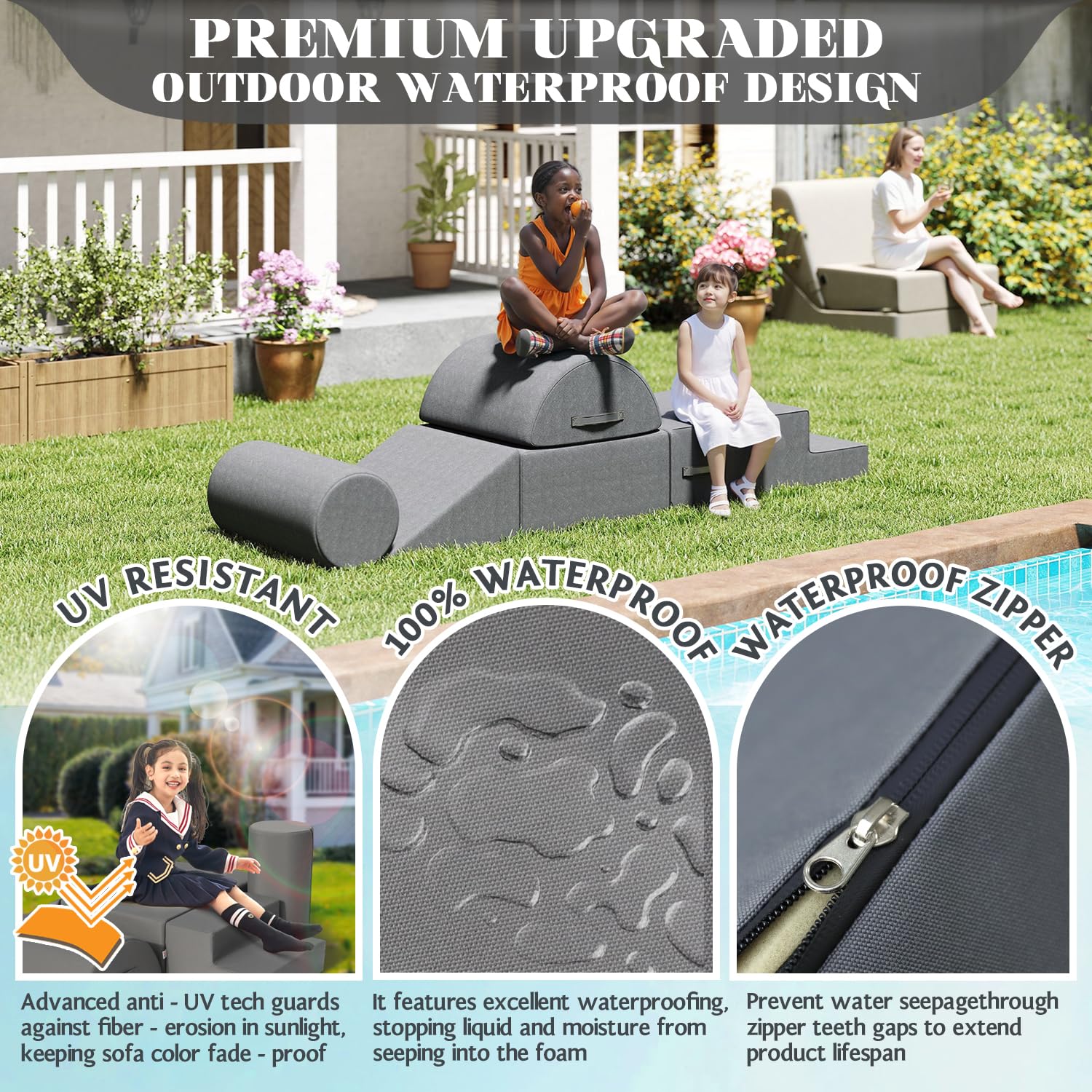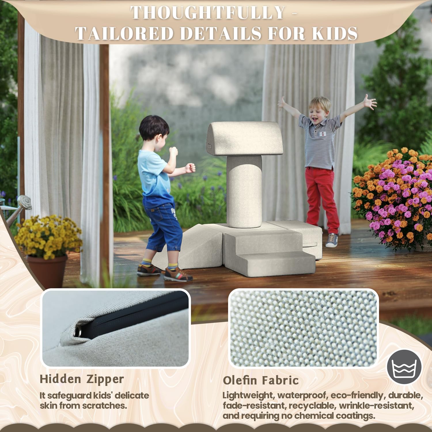 - Waterproof and Stain-resistant Fabric:The jela climbing blocks with upgraded Olefin waterproof fabric have dual protection against moisture and UV rays. This soft play set can be placed freely in children's rooms, on terraces, or in courtyards, allowing children to play without restrictions. In the face of situations like juice spills or mud stains, they can be easily wiped clean, continuously creating a hygienic play environment for children.