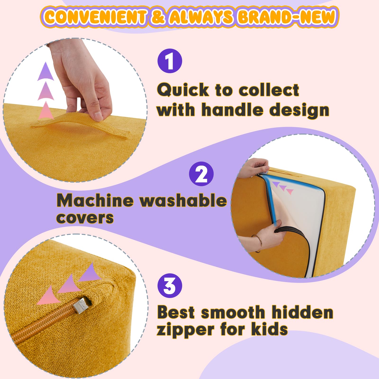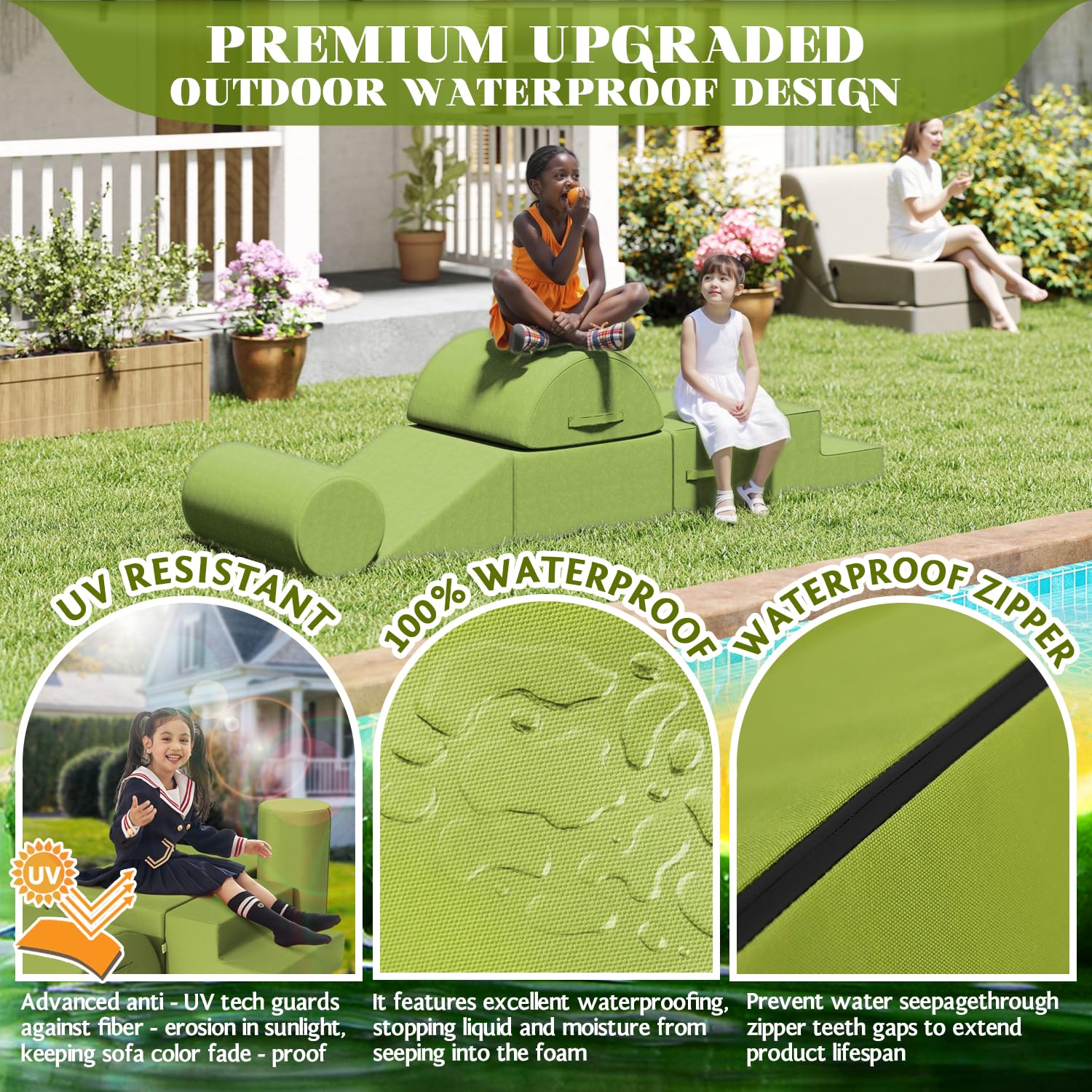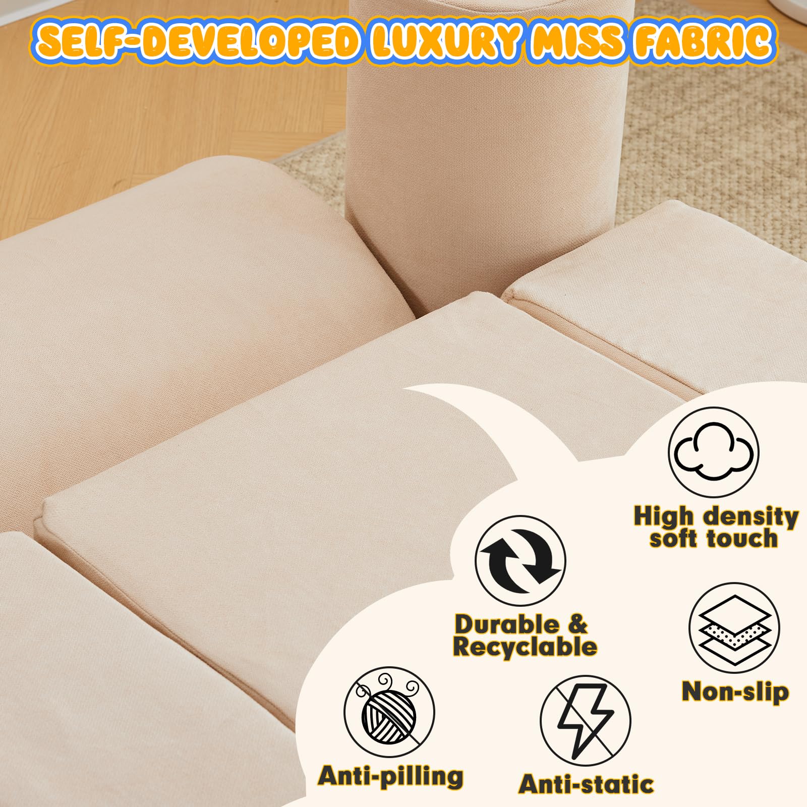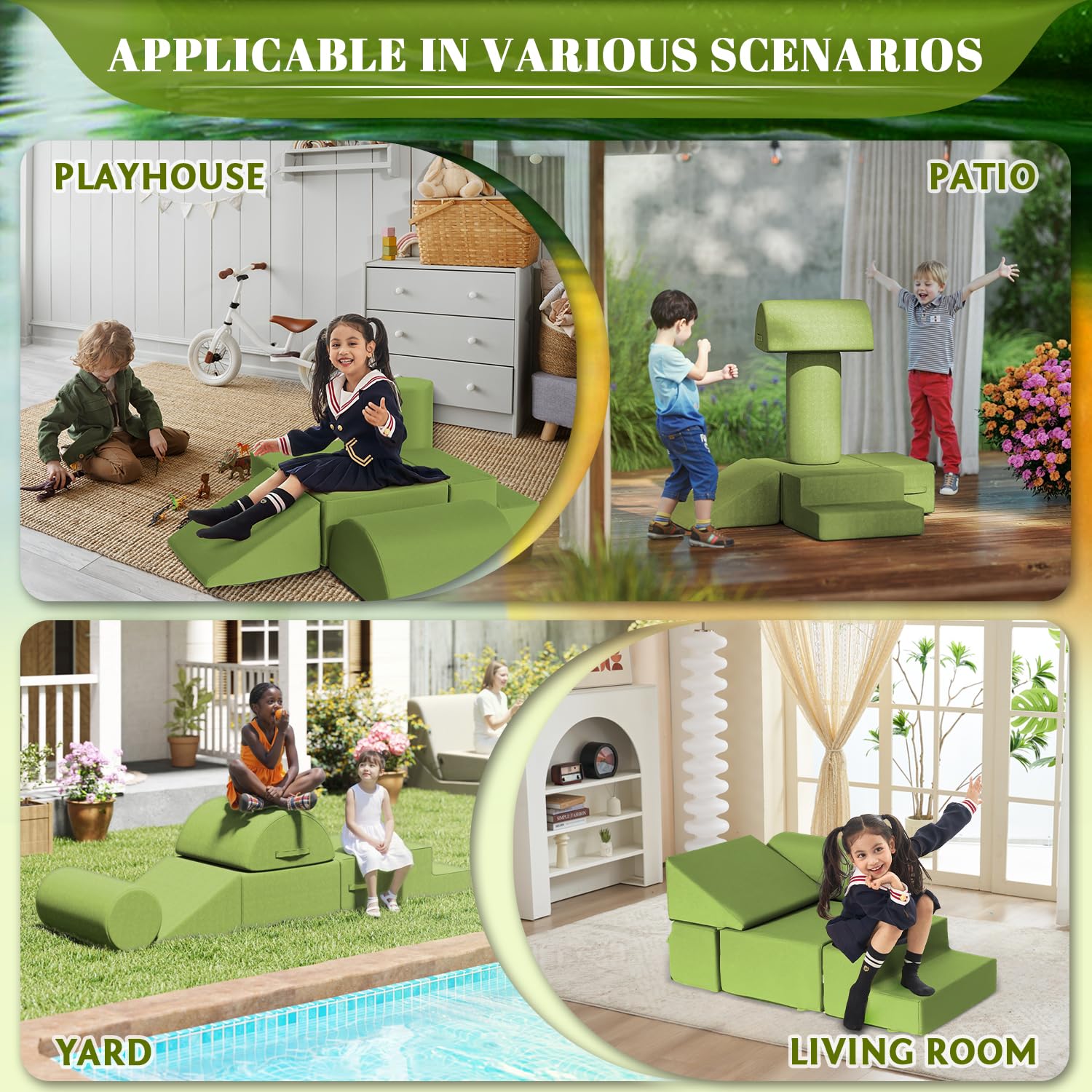 - Waterproof and Stain-resistant Fabric:The jela climbing blocks with upgraded Olefin waterproof fabric have dual protection against moisture and UV rays. This soft play set can be placed freely in children's rooms, on terraces, or in courtyards, allowing children to play without restrictions. In the face of situations like juice spills or mud stains, they can be easily wiped clean, continuously creating a hygienic play environment for children.
