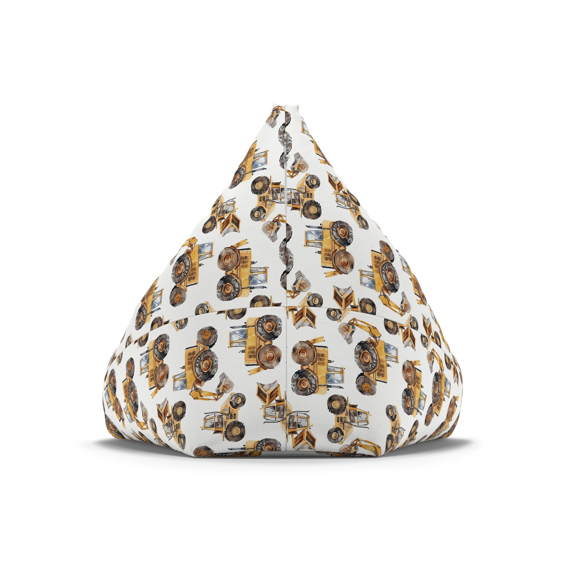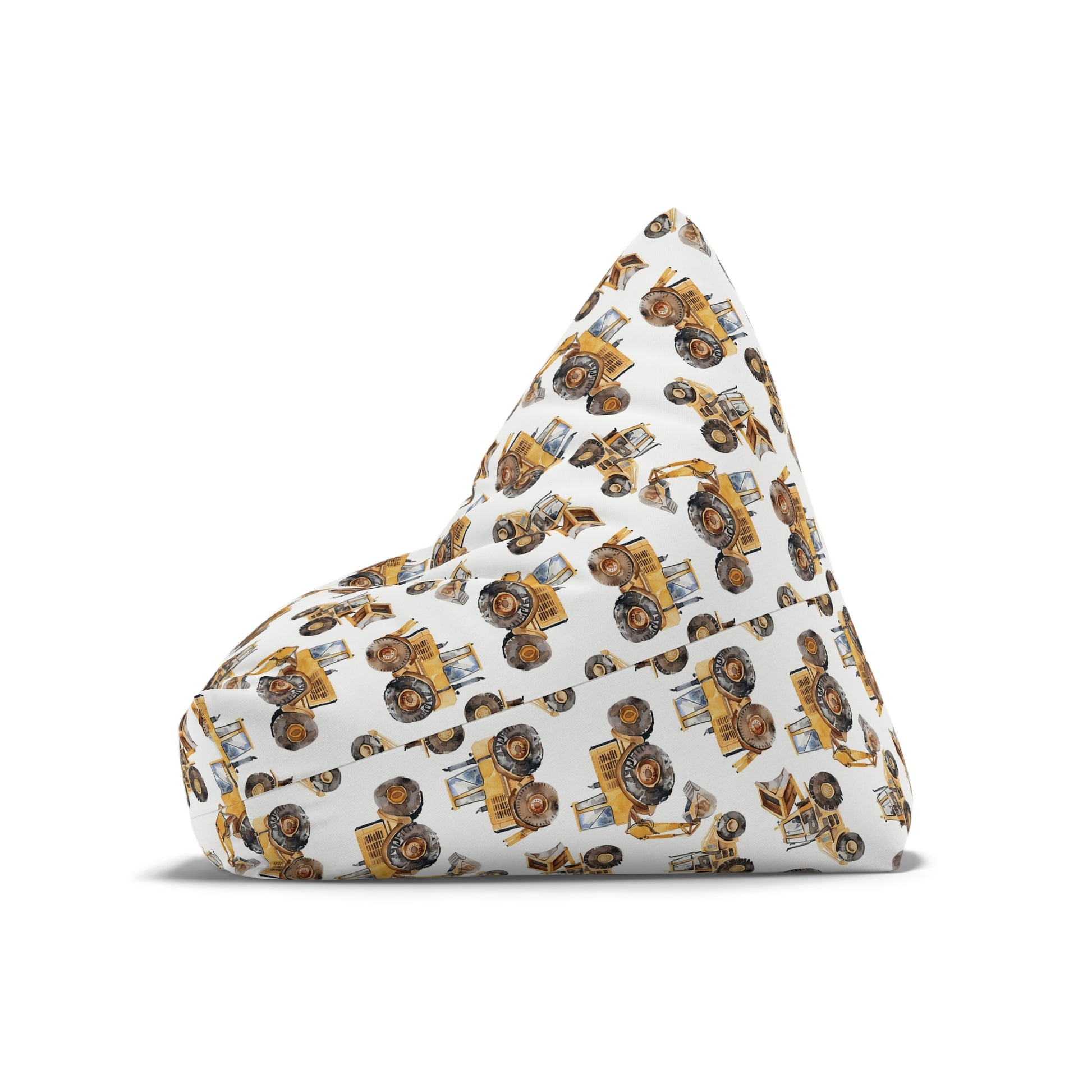 This Kids Bean Bag Chair Cover featuring tractors, and backhoes design is perfect for adding a fun and playful touch to any child's room. The durable 100% polyester canvas material ensures longevity and easy maintenance. The bean bag cover comes in 2 sizes, with secure lock and key zipper closure for safety. Ideal for kids' rooms, playrooms, and birthday parties.