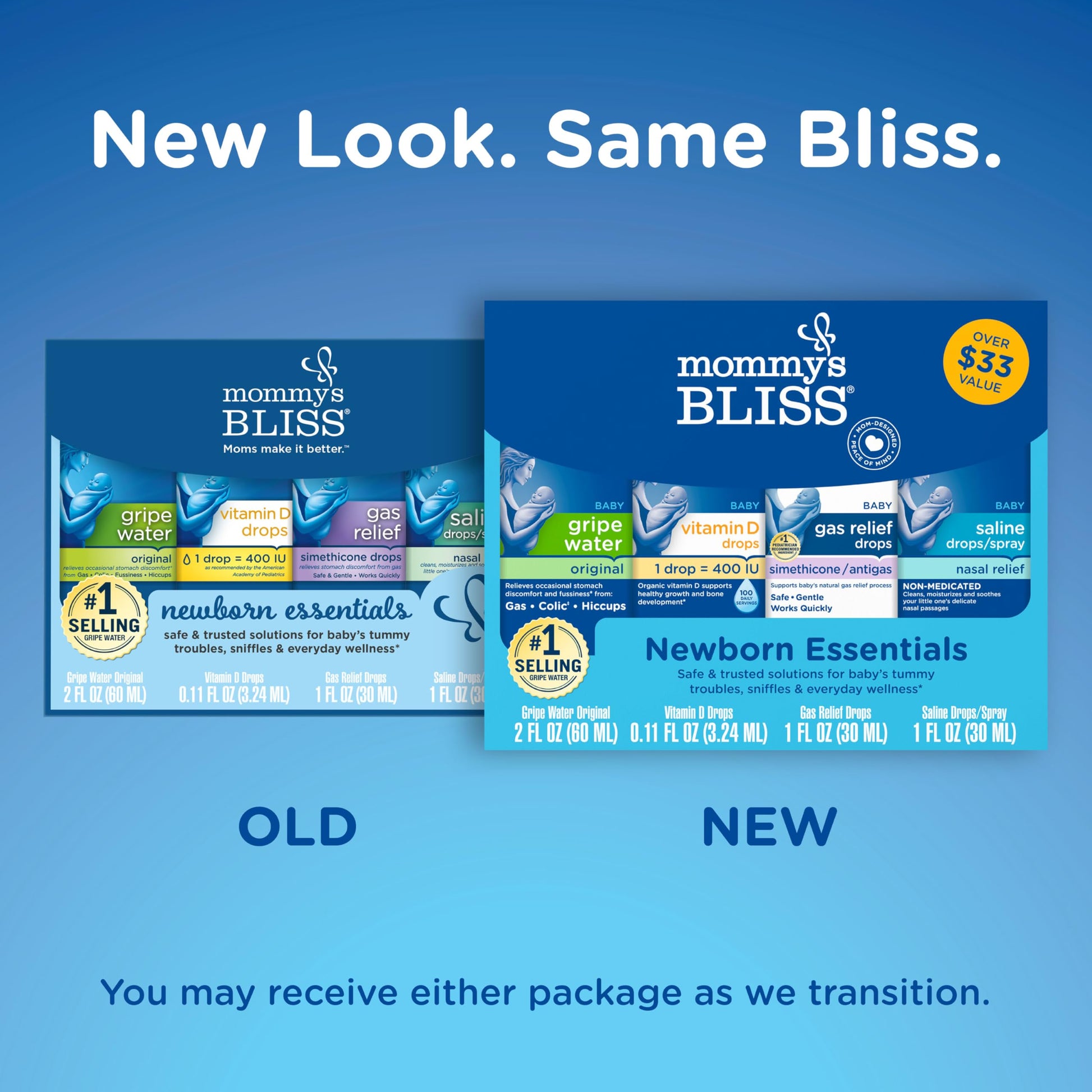 Mommy's Bliss Newborn Essentials Gift Set, Includes Gripe Water, Baby Vitamin D/Gas Drops and Gentle Saline Drops/Spray