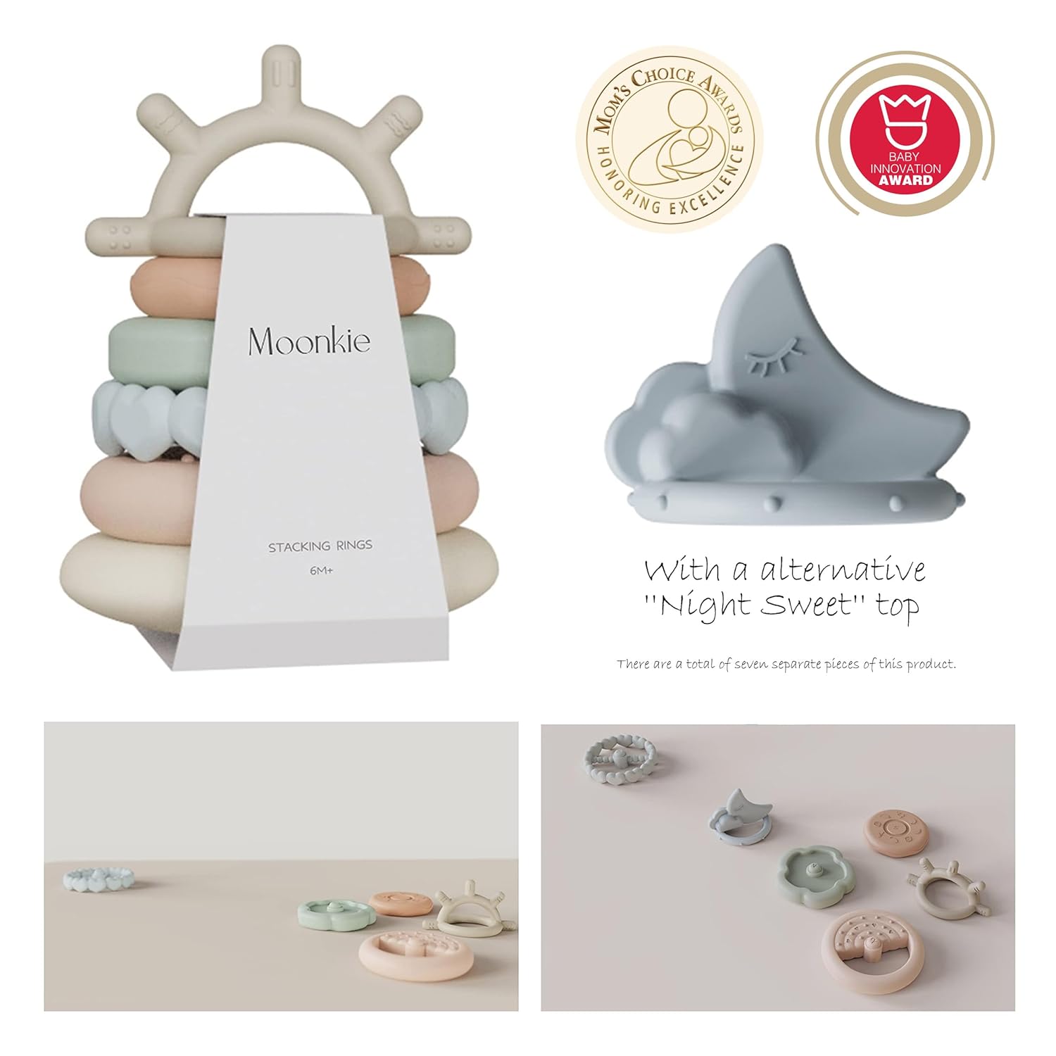 - ✨ VERSATILE TEETHING TOY: Moonkie's baby teething rings are not only great for stacking games but also serve as a safe and soft teether for your baby to chew on. Made from high-quality food-grade silicone, you can let your baby bite our teething rings without worrying about harmful ingredient.