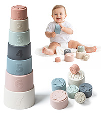 - ✨ INNOVATIVE DESIGN: Our stacking toys come in 7 pieces with different shapes and sizes , providing more choices for your baby to explore. They are also soft, chewable and portable, making them perfect for on-the-go playtime.