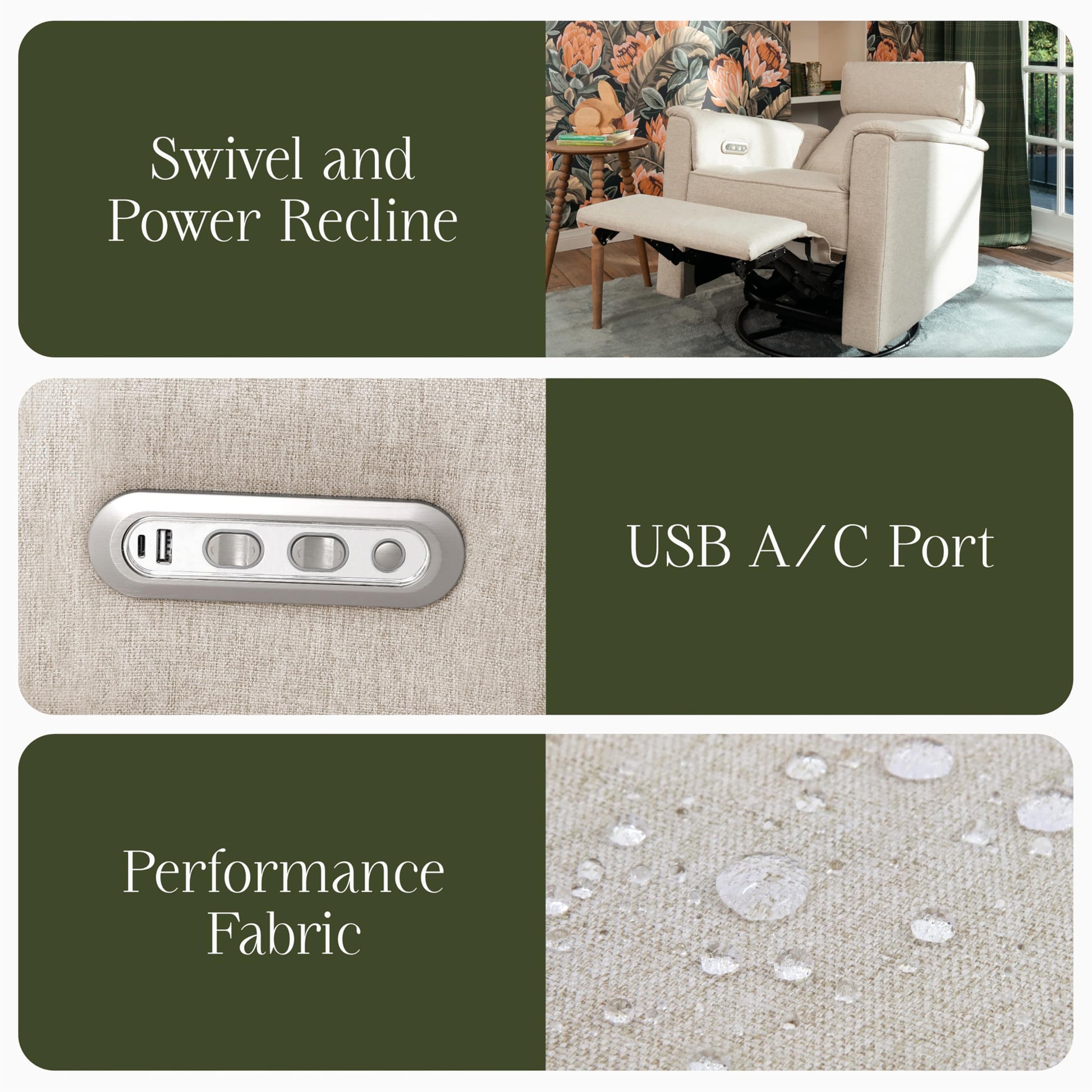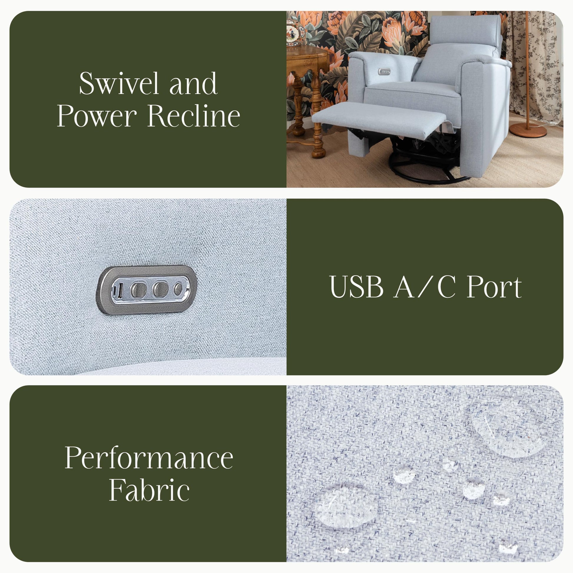 NAMESAKE Willa Plus Electric Power Recliner Chair with Headrest & USB Ports - Water & Stain Resistant Nursery Glider Rocking Chair for Nursing - GREENGUARD Gold Certified 270° Swivel Glider Recliner