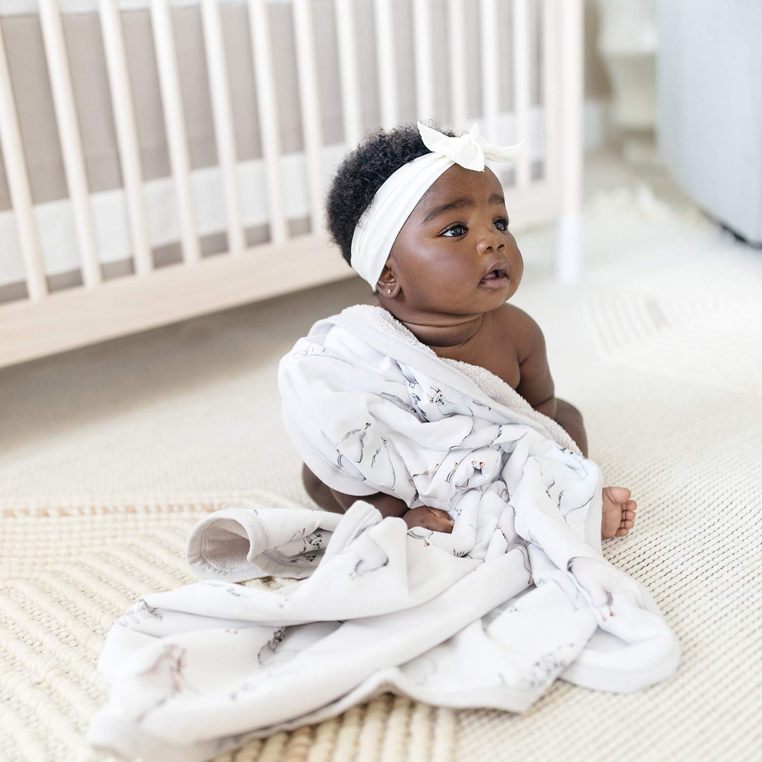 - MACHINE WASHABLE: This stain-resistant fabric is designed to handle all your baby's messes and is fully machine washable for your convenience. Made from a premium blend of 95% cotton and 5% elastane, it resists pilling and fading over time while releasing wrinkles with ease. Best of all, this blanket becomes even softer with every wash!