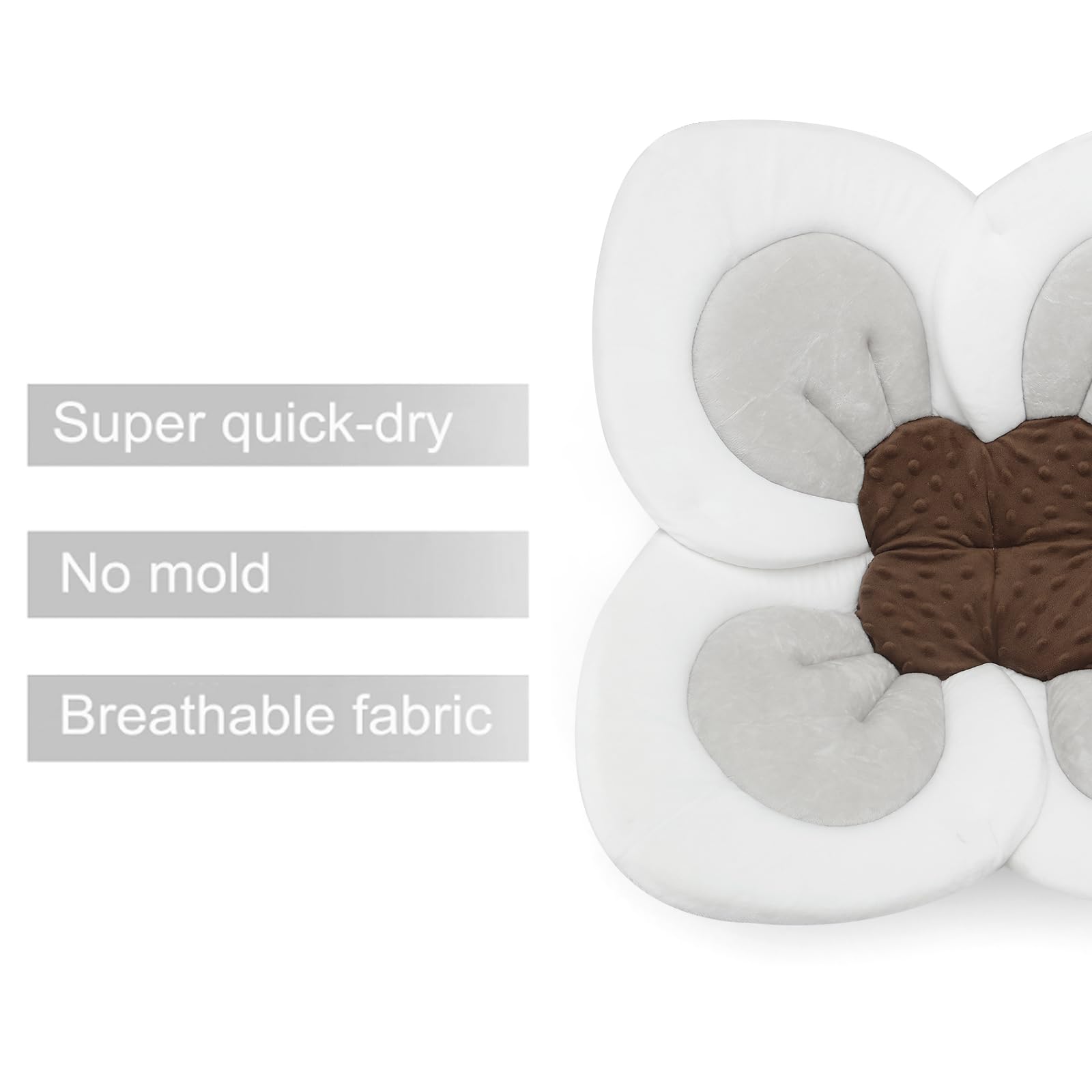 PandaEar Baby Bath Pad for Infant Newborn | Soft Flower Petals for Sink Bathtub Essentials Shower Gift (Grey)