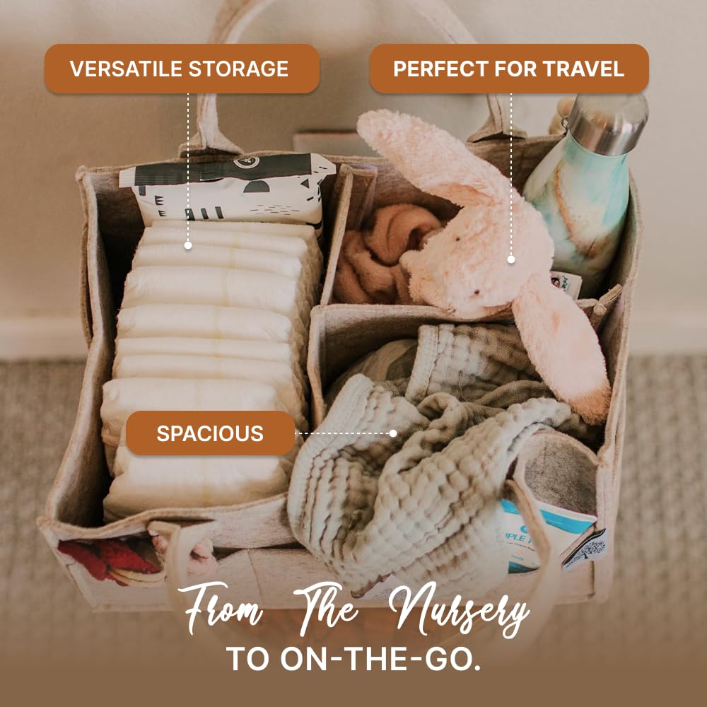 - QUALITY AND SATISFACTION GUARANTEE: Crafted from soft felt, our diaper caddy is built to last. The high-quality materials ensure durability and easy maintenance. We stand behind the product with a satisfaction guarantee, making your purchase risk-free. Elevate your diaper organization with the Parker Baby Diaper Caddy – the ultimate diaper bag essential and nursery organizer.