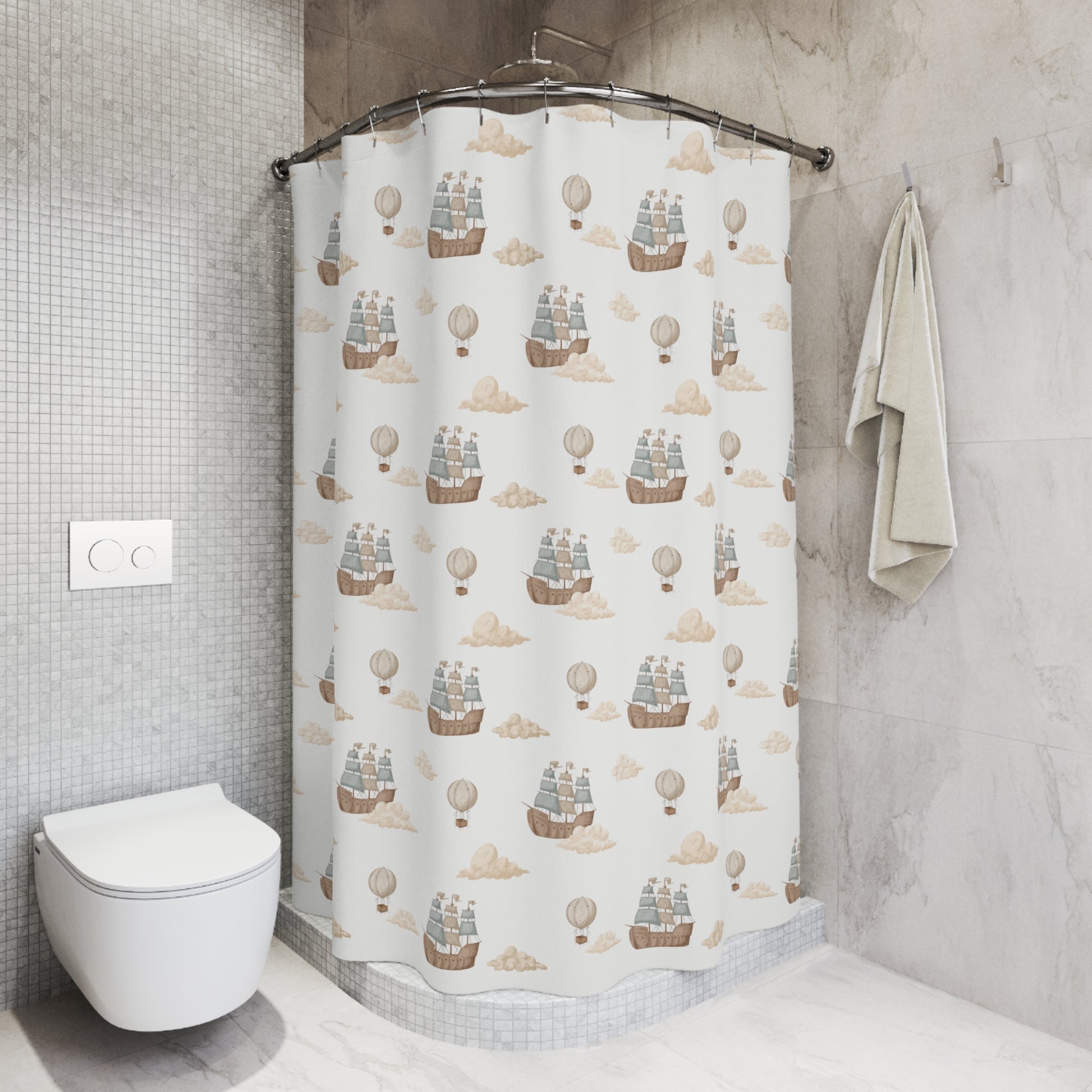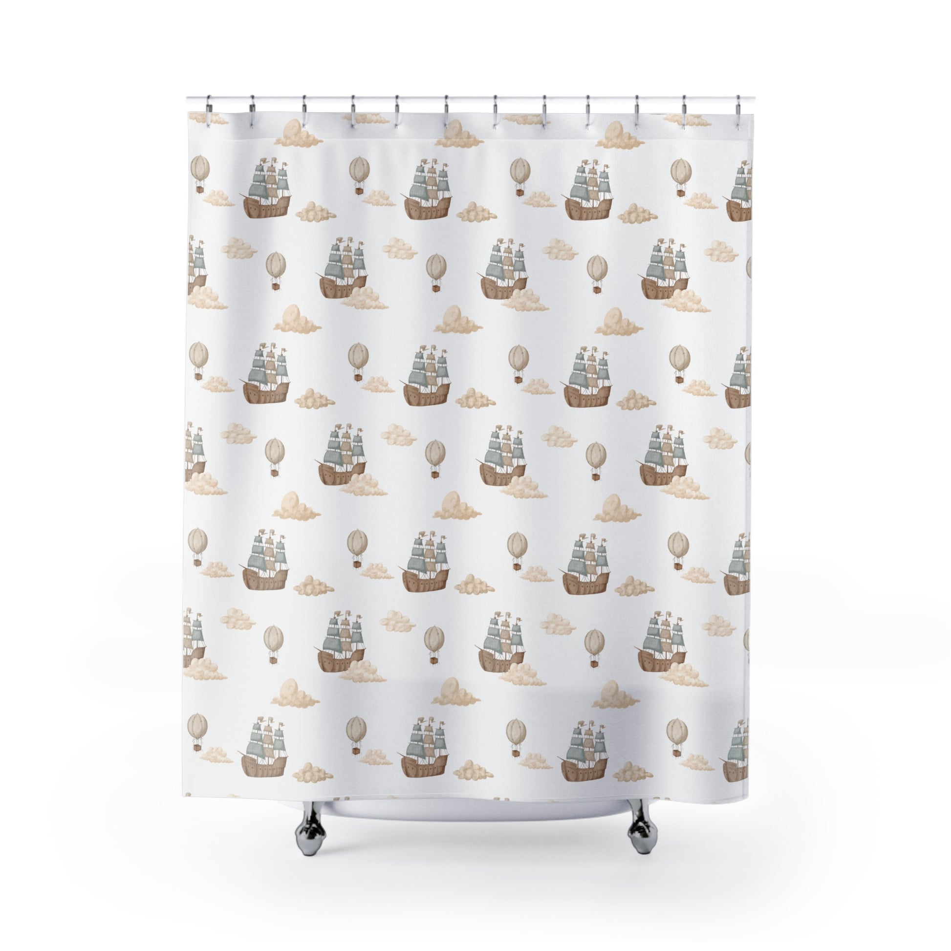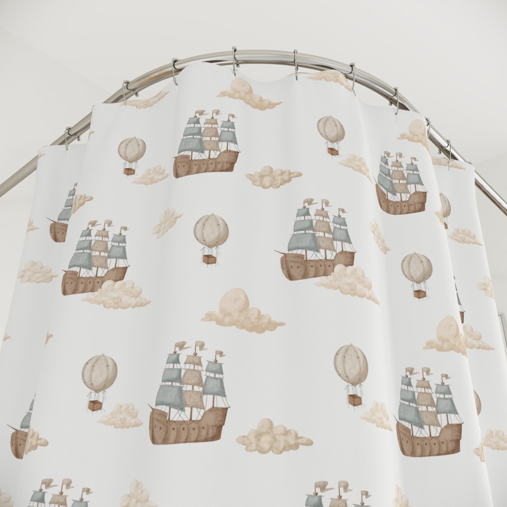 This Pirate Ship Children's Shower Curtain is perfect for adding a whimsical touch to a kid's bathroom. The design features a colorful pirate ship that will spark imagination and create a fun atmosphere during bath time. Ideal for parents looking to decorate their child's bathroom with a playful theme.