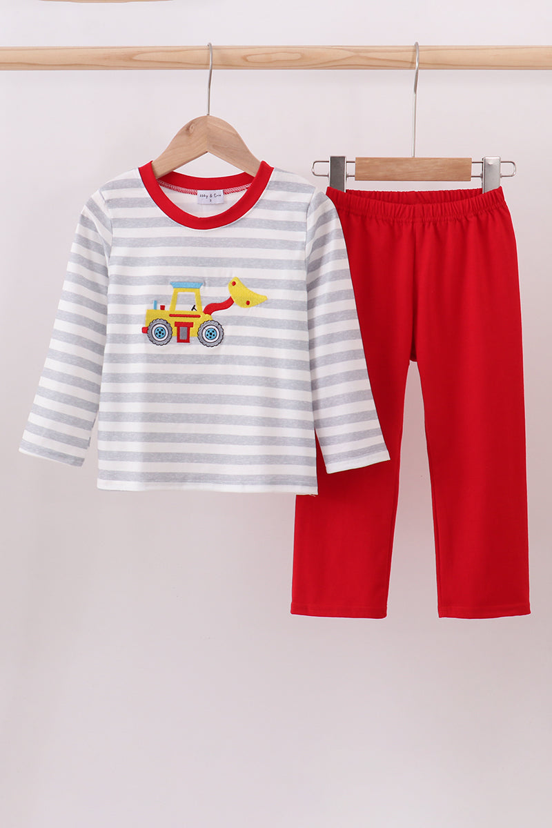 Get ready for fun-filled adventures with this playful Red Stripe Excavator Applique Pants Set! Featuring bold red stripes and a charming excavator applique, these pants bring a touch of construction zone excitement to your little one’s wardrobe. Comfortable and durable, this set lets kids move freely while adding a spirited pop of color and creativity to their day. Perfect for playtime or casual outings, it’s a cheerful outfit that sparks imagination and keeps comfort front and center.