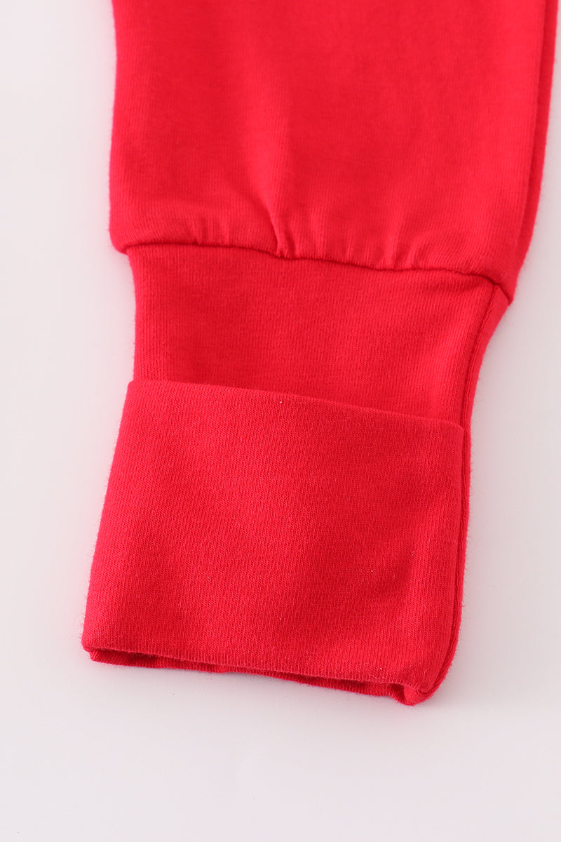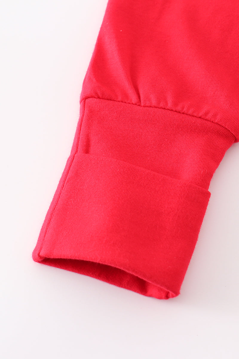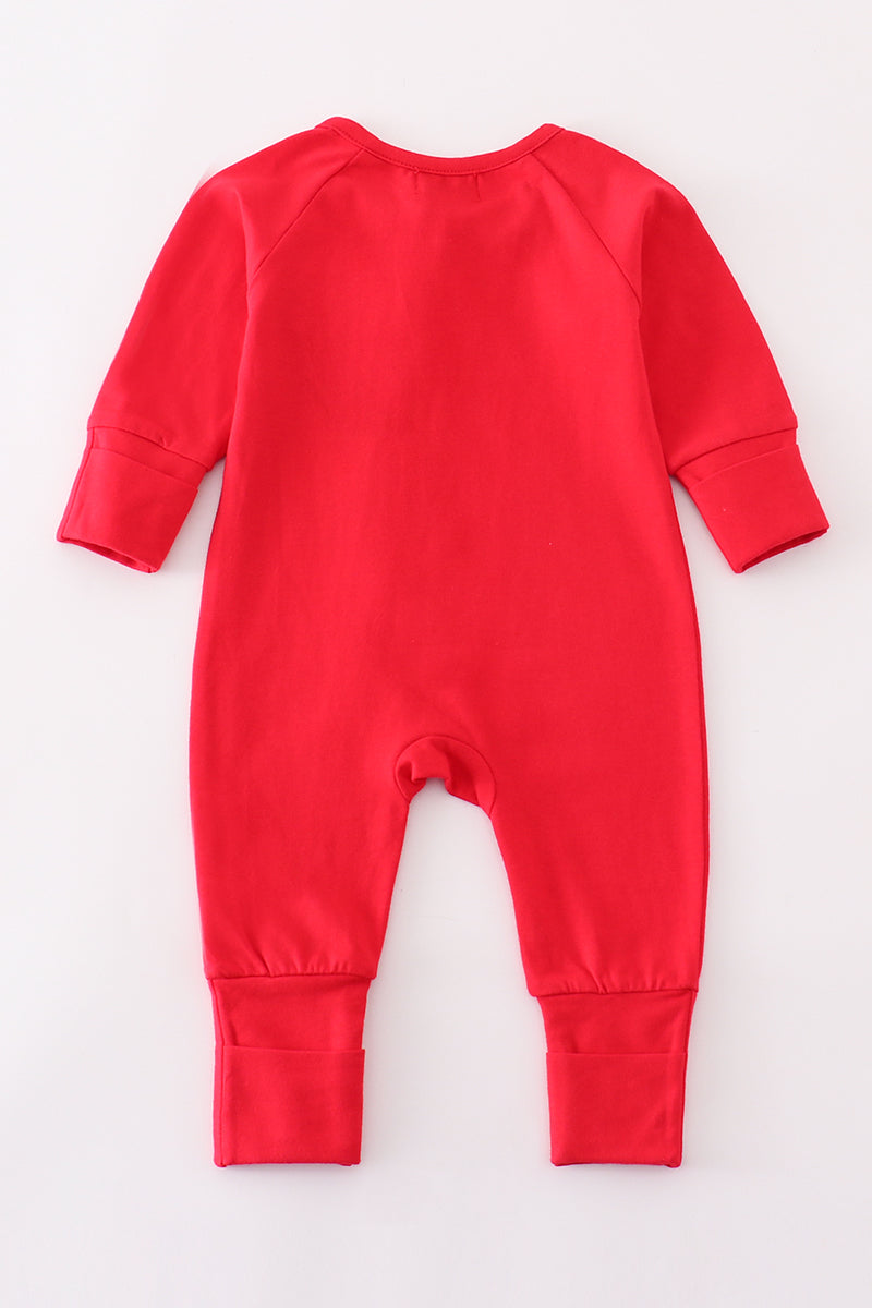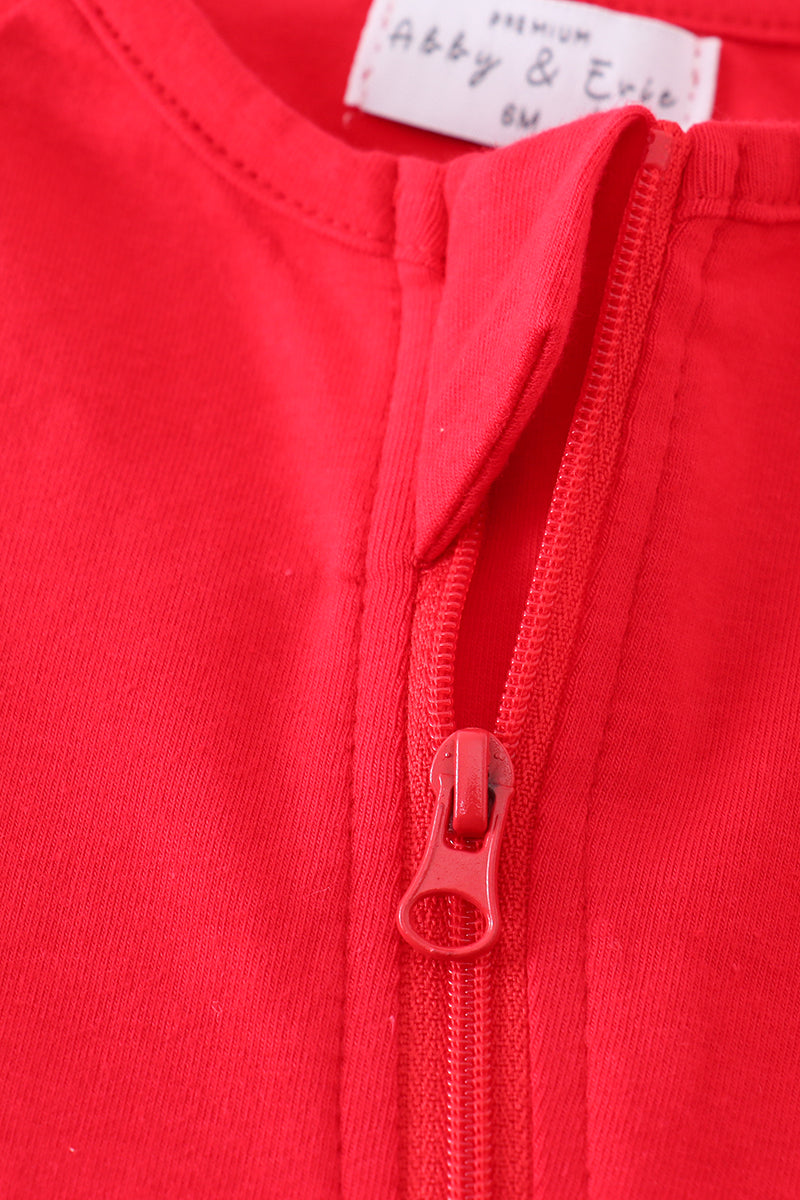 Get ready for bedtime in style with our Red Zip Boy Pajama Romper! This playful and comfortable romper features a convenient front zip for easy changes, making it perfect for busy parents. The bold red color adds a pop of fun to bedtime, while the soft fabric ensures a good night's sleep. (Zzz's not included!)