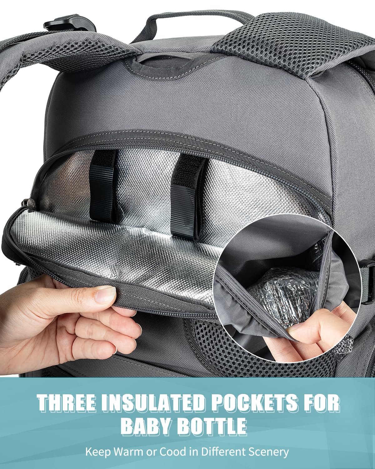 - Insulated and Organized for Baby's Needs: This backpack features 3 insulated pockets for baby bottles and easy-access wipes storage. A large compartment accommodates essentials like blankets, while the special back insulation layer is perfect for wet items or a water bladder.
