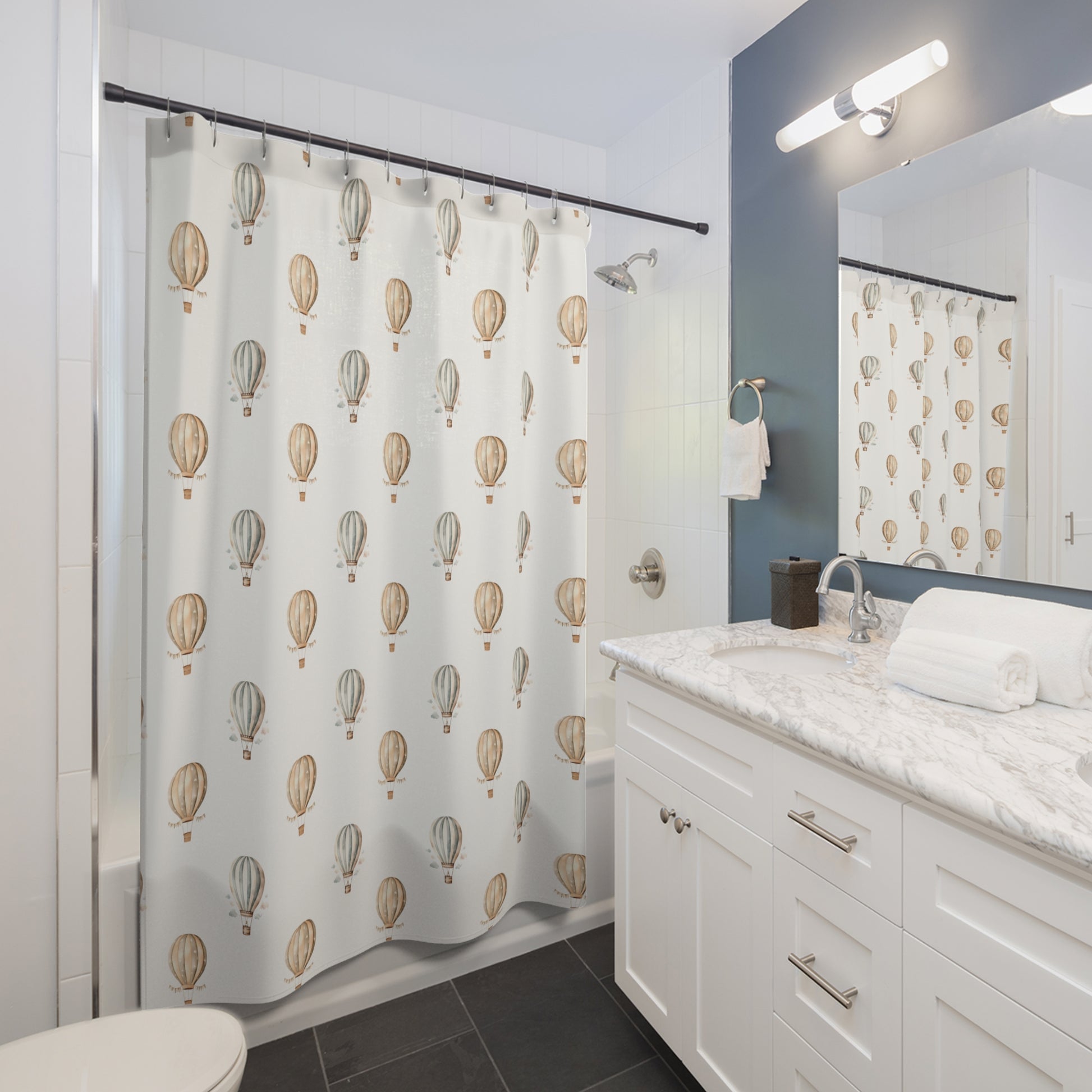 Add a touch of whimsy to your bathroom with these Shower Curtains featuring a neutral hot air balloon design. Perfect for adults who enjoy a relaxing atmosphere in their bathroom. Ideal for decorating during spring and summer.